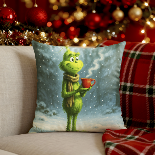 Świąteczna Poduszka Dekoracyjna z Zielonym Stworkiem – Zimowy Klimat