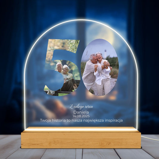 Lampka LED z grawerem i zdjęciem – Prezent na 50 Rocznicę Ślubu