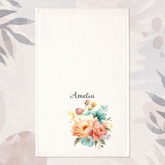 Personalizowany Ręcznik z Akwarelowymi Kwiatami i Imieniem