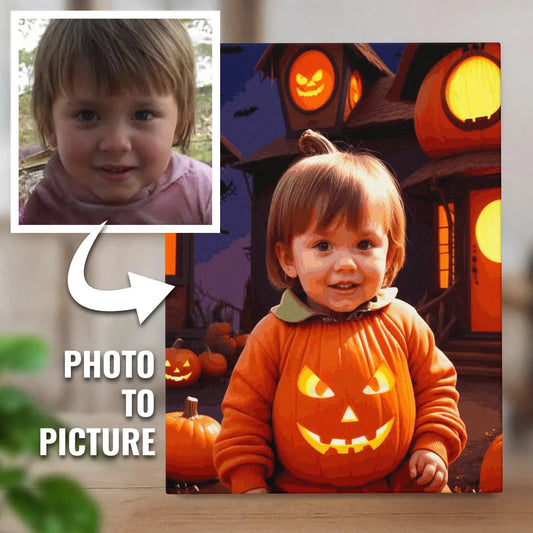 Zestaw do malowania po numerach "Dziecko w stroju dyni na Halloween"