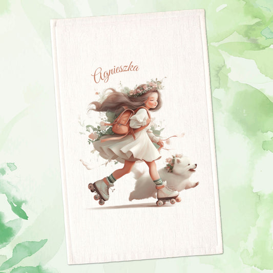 Spersonalizowany Ręcznik z Dziewczynką na Rolkach – Prezent z Imieniem dla Twojego Dziecka