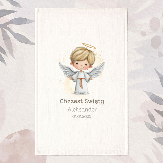 Personalizowany ręcznik na Chrzest z aniołkiem – imię i data