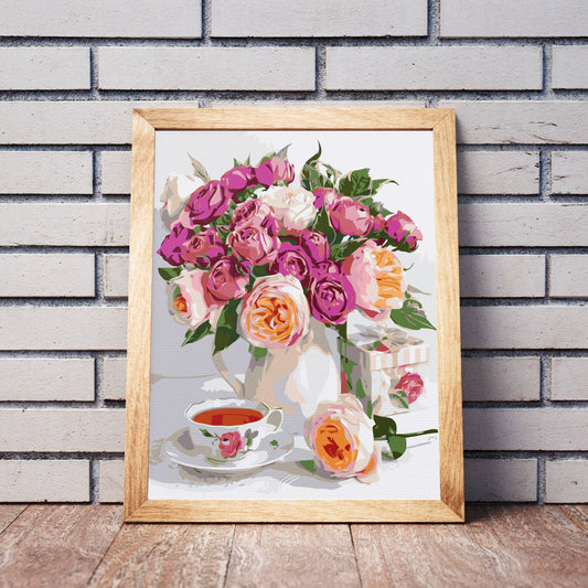 Kwiaty w Wazonie z Filiżanką Kawy (NK0429)