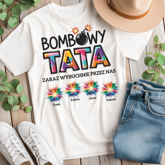 Personalizowana Koszulka Bombowy Tata â Ćmieszny Prezent od Dzieci
