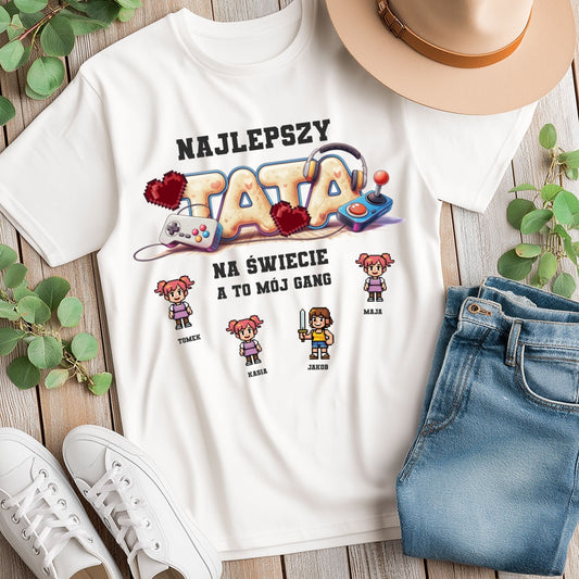 Koszulka: Najlepszy Tata Na Świecie – A To Mój Gang – Personalizowana z Imionami!
