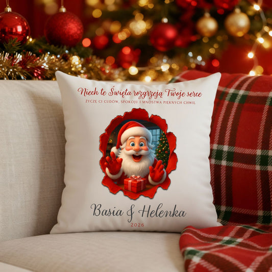 Personalizowana Poduszka Świąteczna z Mikołajem – Twoja Dedykacja, Idealny Prezent na Boże Narodzenie