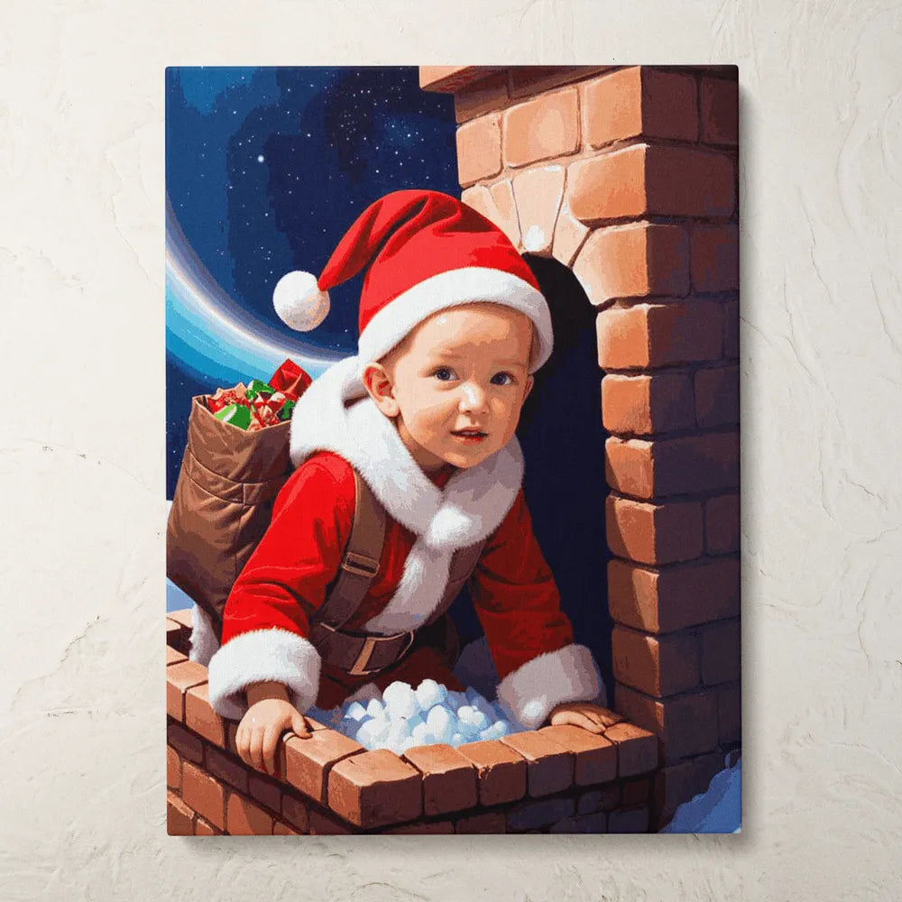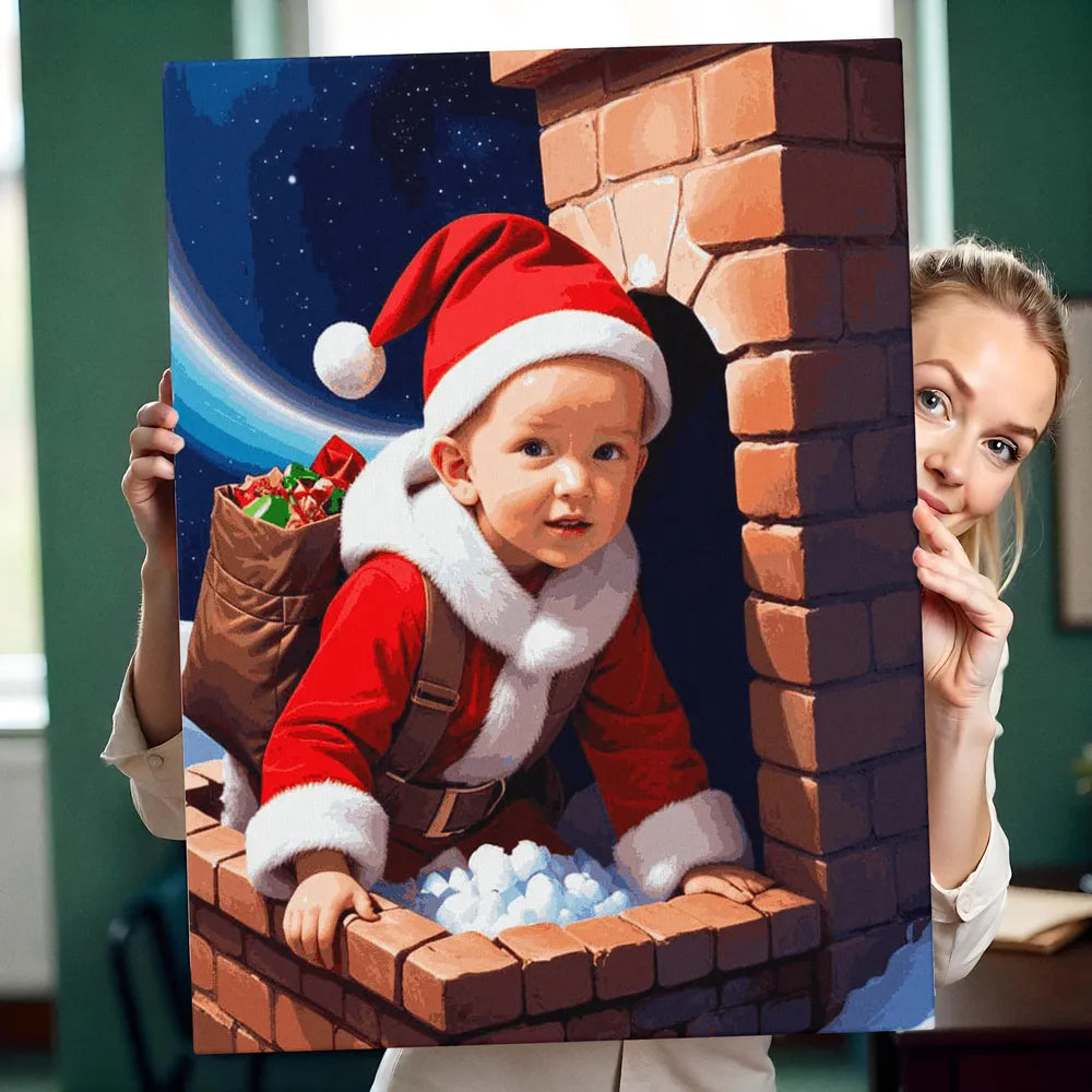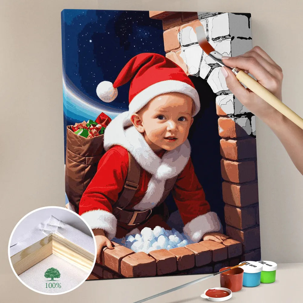 Zestaw do malowania po numerach „Mały Mikołaj na dachu”.