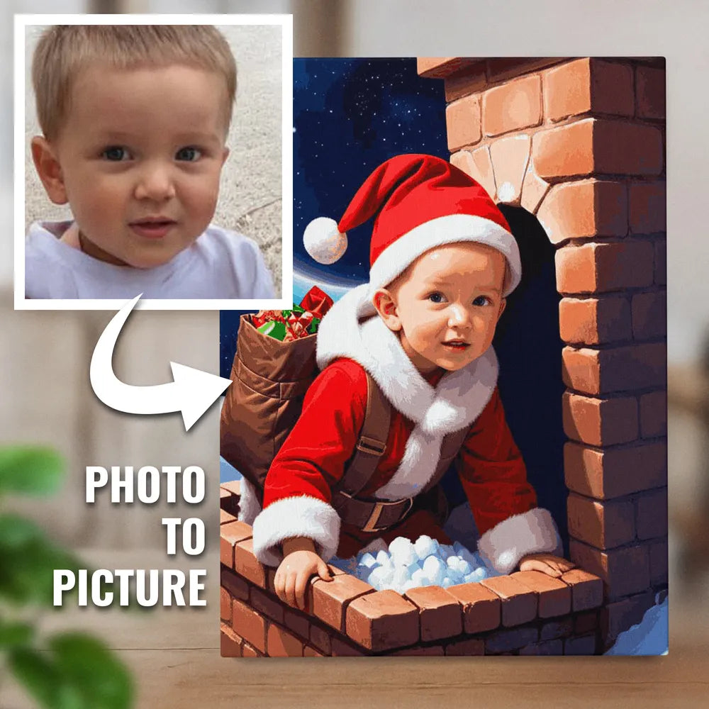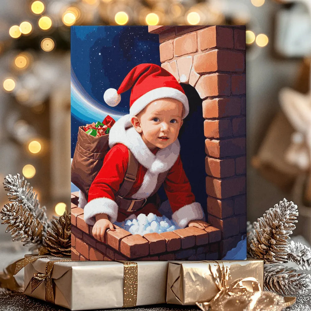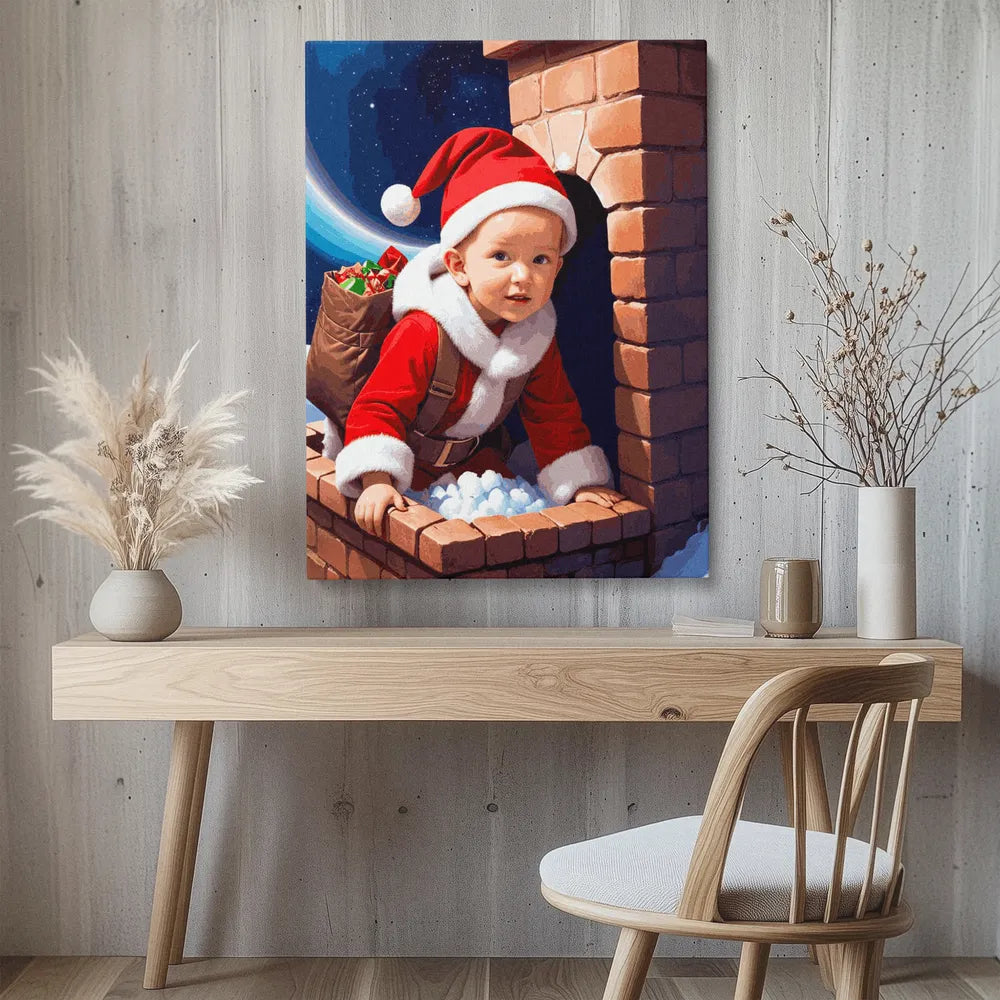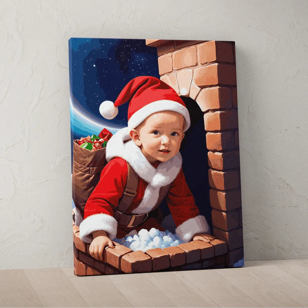 Zestaw do malowania po numerach „Mały Mikołaj na dachu”.