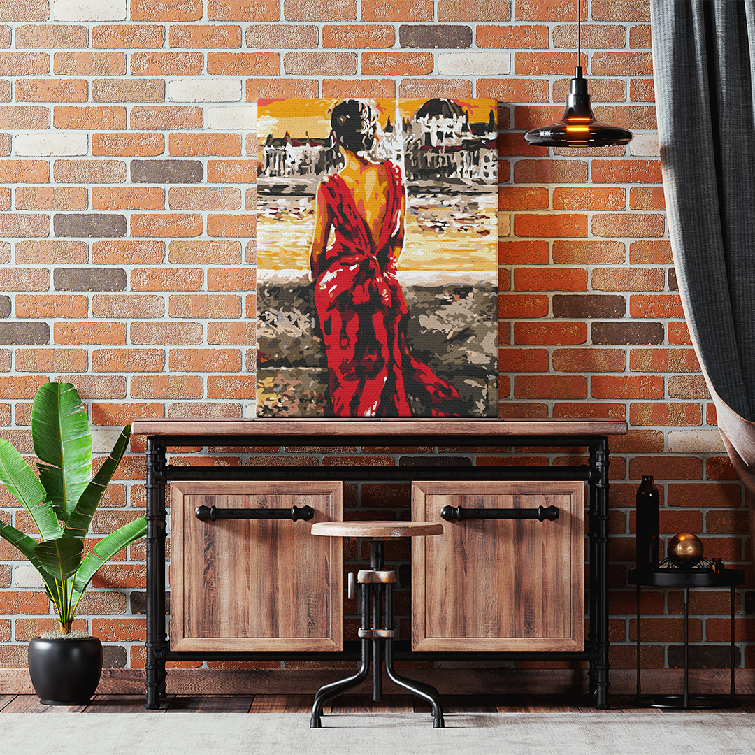 Kobieta w Czerwonej Sukni nad Rzeką