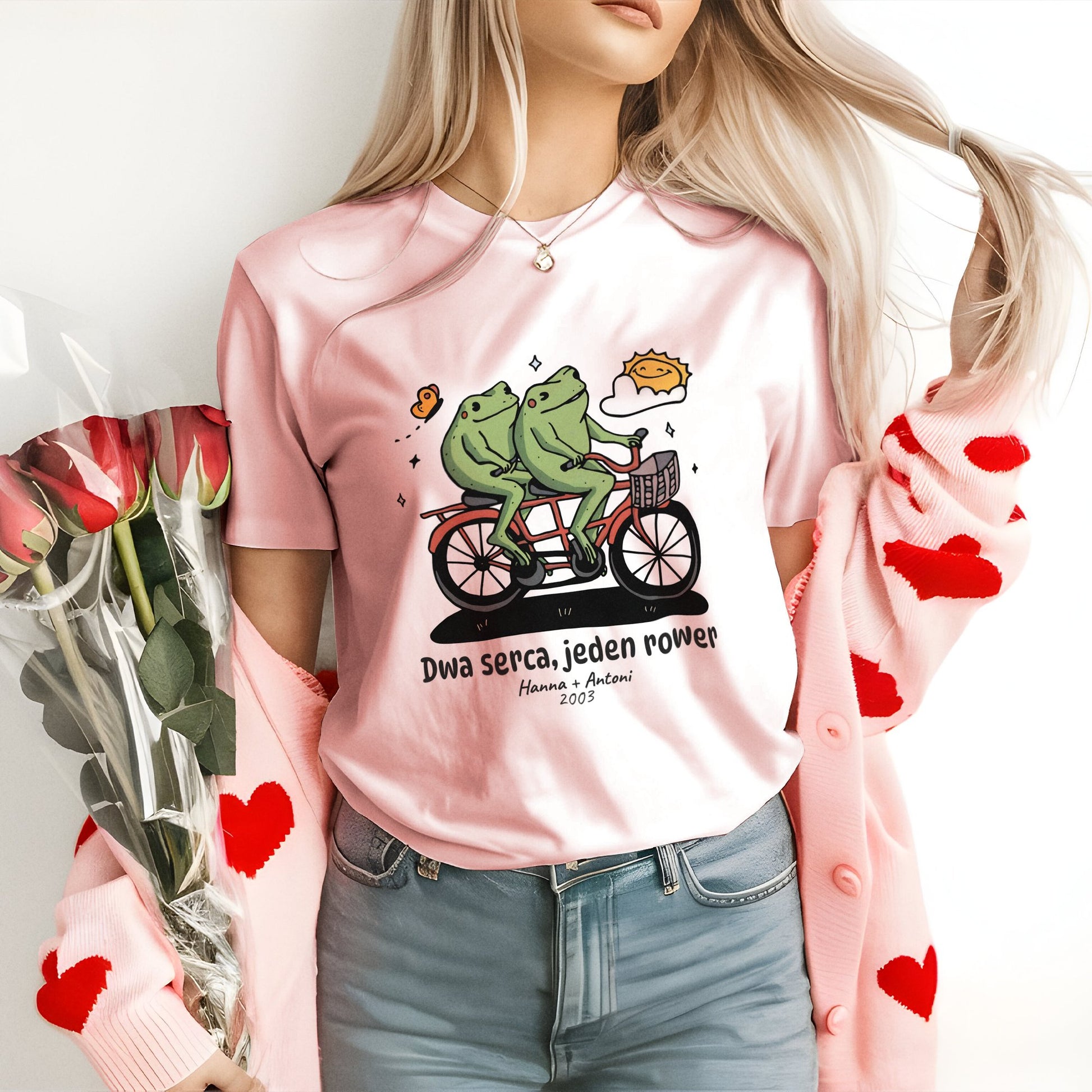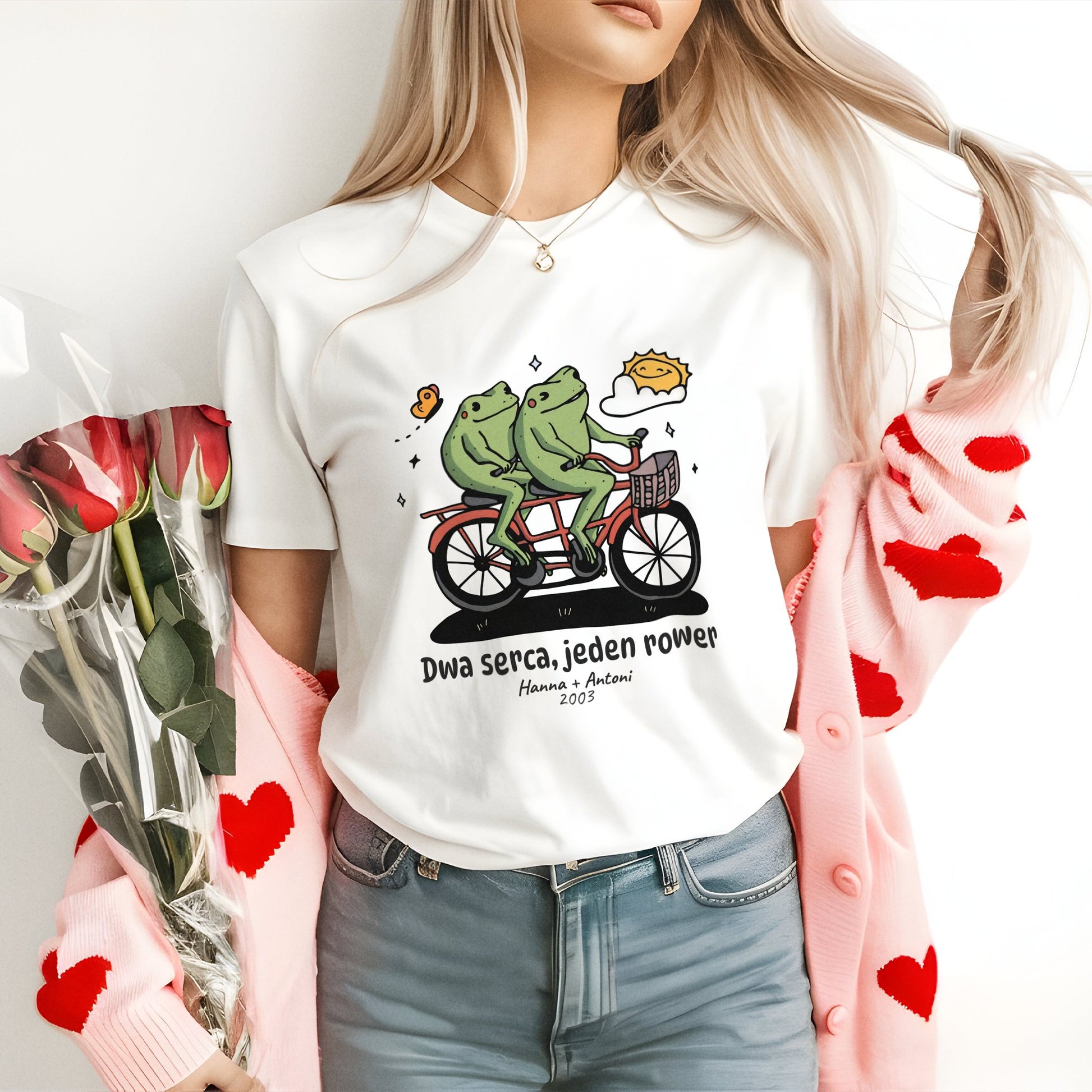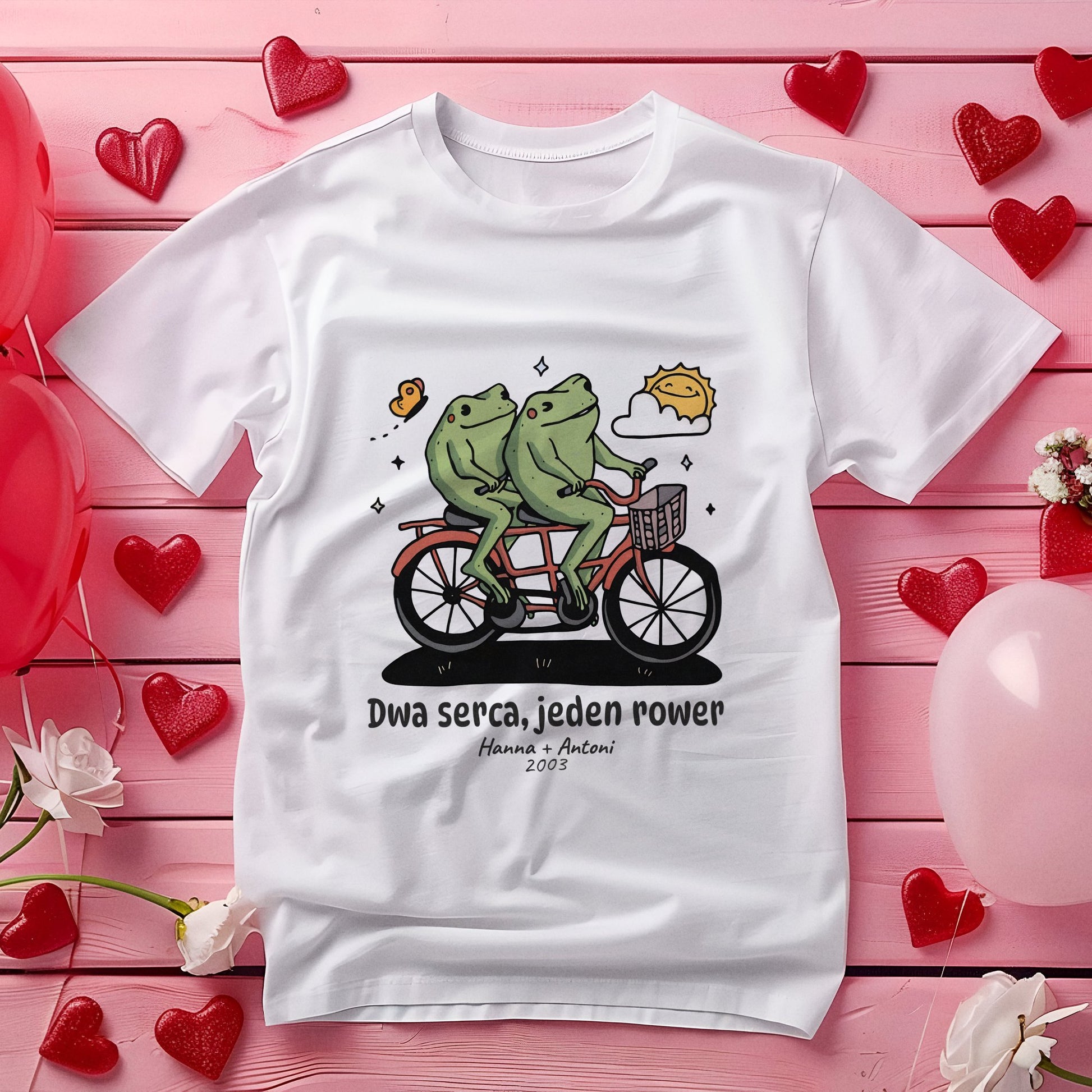 Koszulka „Dwa serca, jeden rower” to uroczy prezent na Walentynki, który idealnie oddaje symbol wspólnej drogi przez życie. Motyw dwóch serc na jednym rowerze to wyraz miłości, która towarzyszy we wspólnych podróżach, niezależnie od tego, dokąd prowadzi Wasza droga. Wygodna, przyjemna w noszeniu koszulka stanie się doskonałym przypomnieniem o tym, że razem można pokonać każdą trasę.