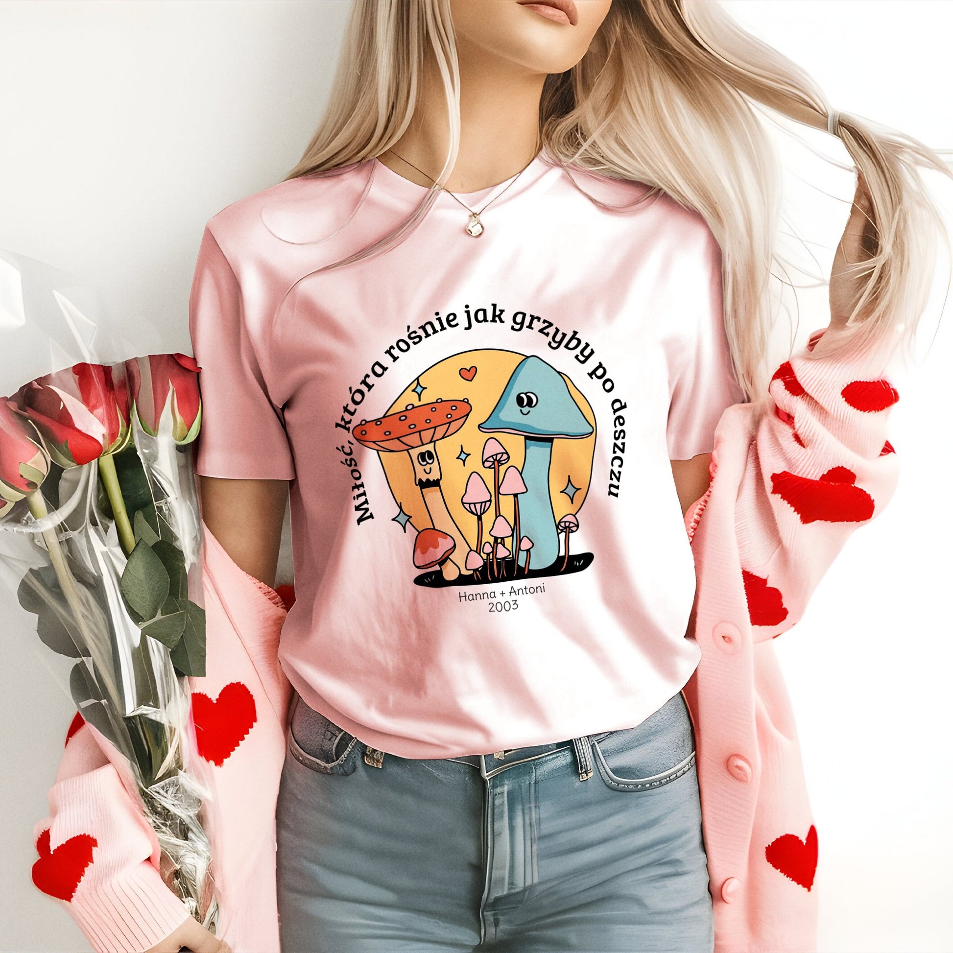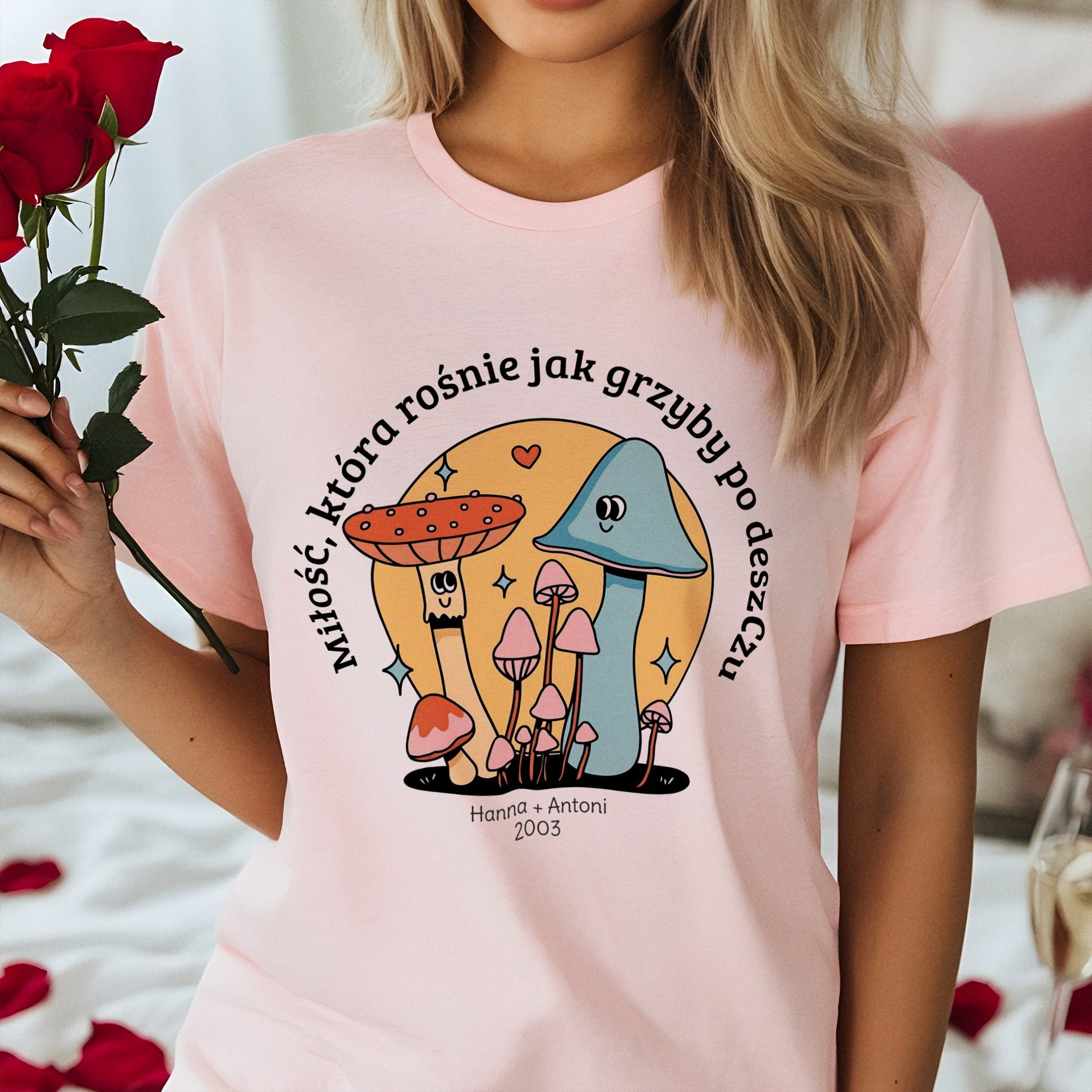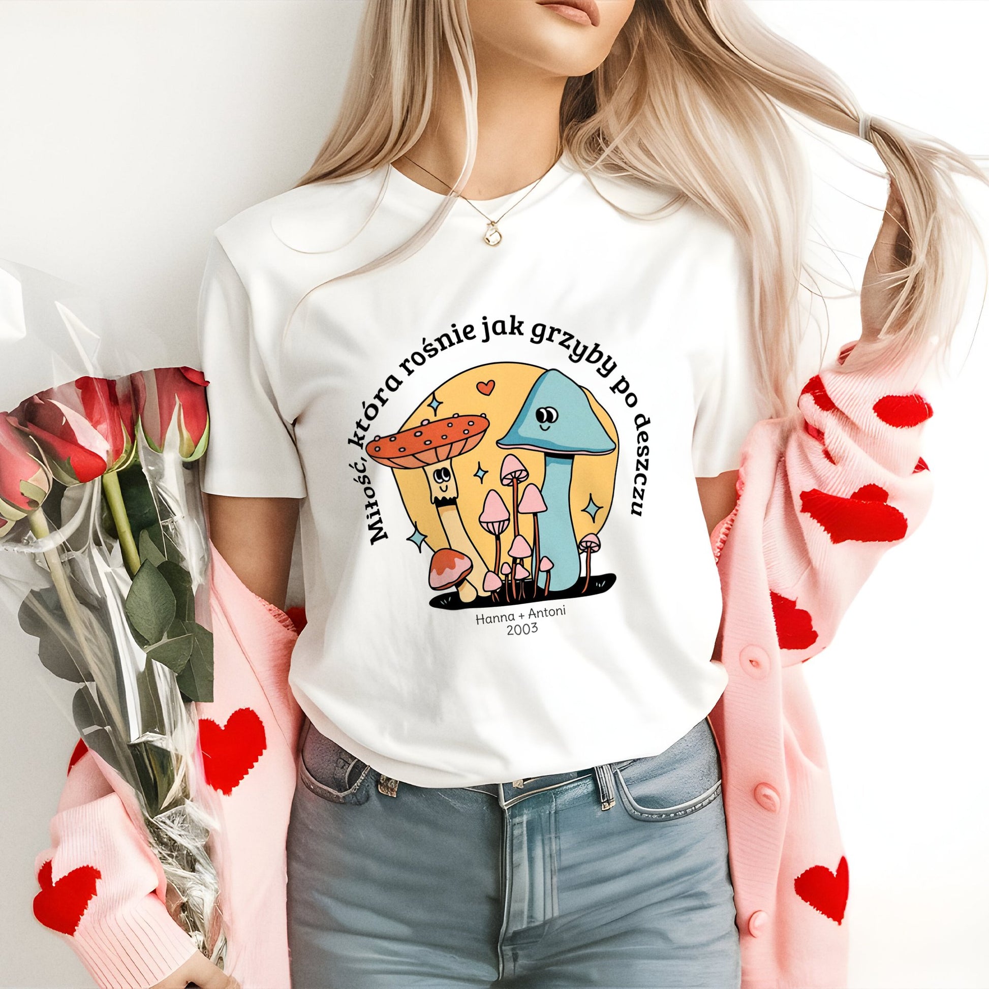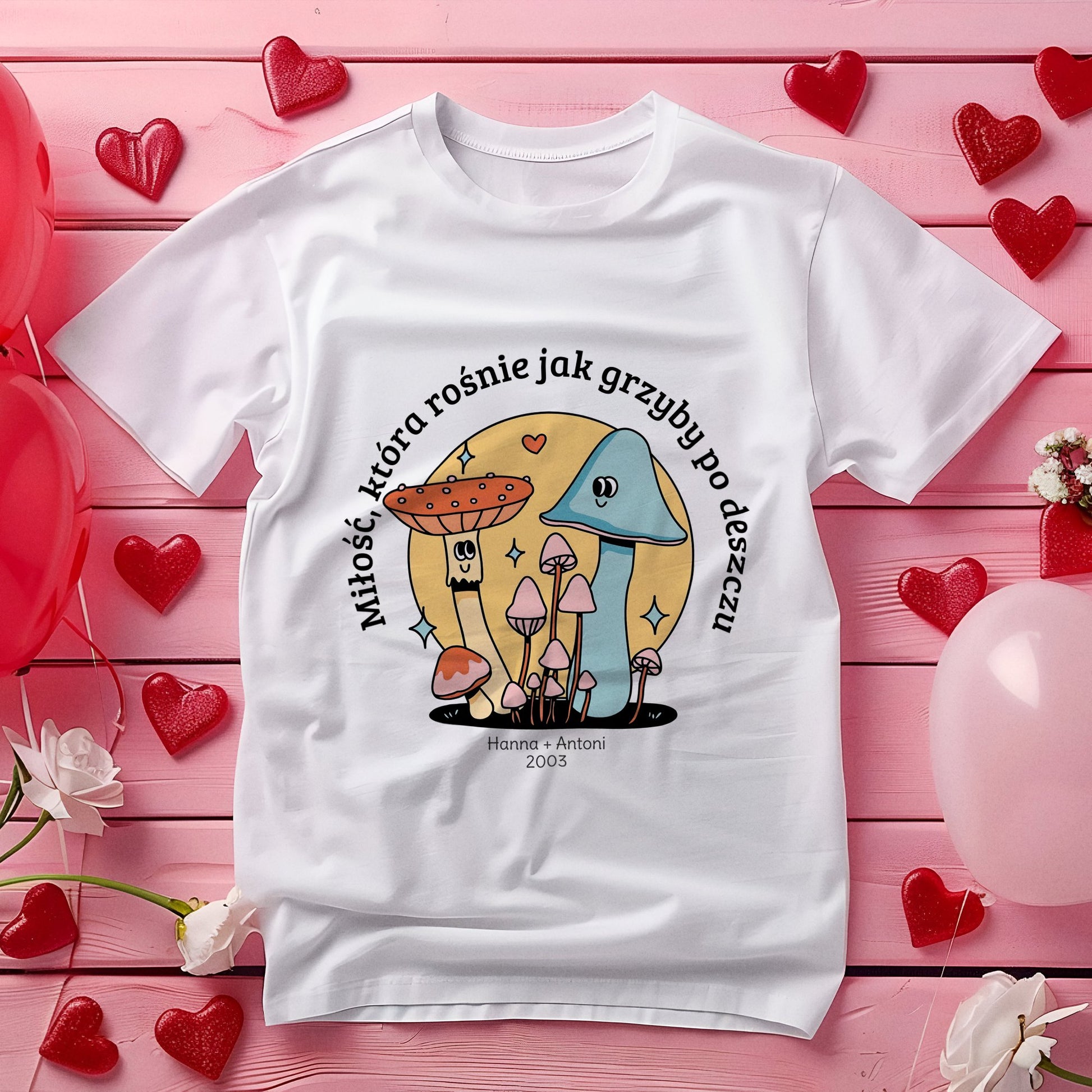 Wyjątkowa koszulka z napisem „Miłość, która rośnie jak grzyby po deszczu” to doskonały prezent na Walentynki. Romantyczny, lekki design i wygodny materiał sprawiają, że ta koszulka będzie świetnym wyborem na codzienną stylizację. Pokaż ukochanej osobie, jak Twoja miłość rośnie każdego dnia, tak jak grzyby po deszczu – pełna ciepła, radości i nieoczekiwanych chwil!