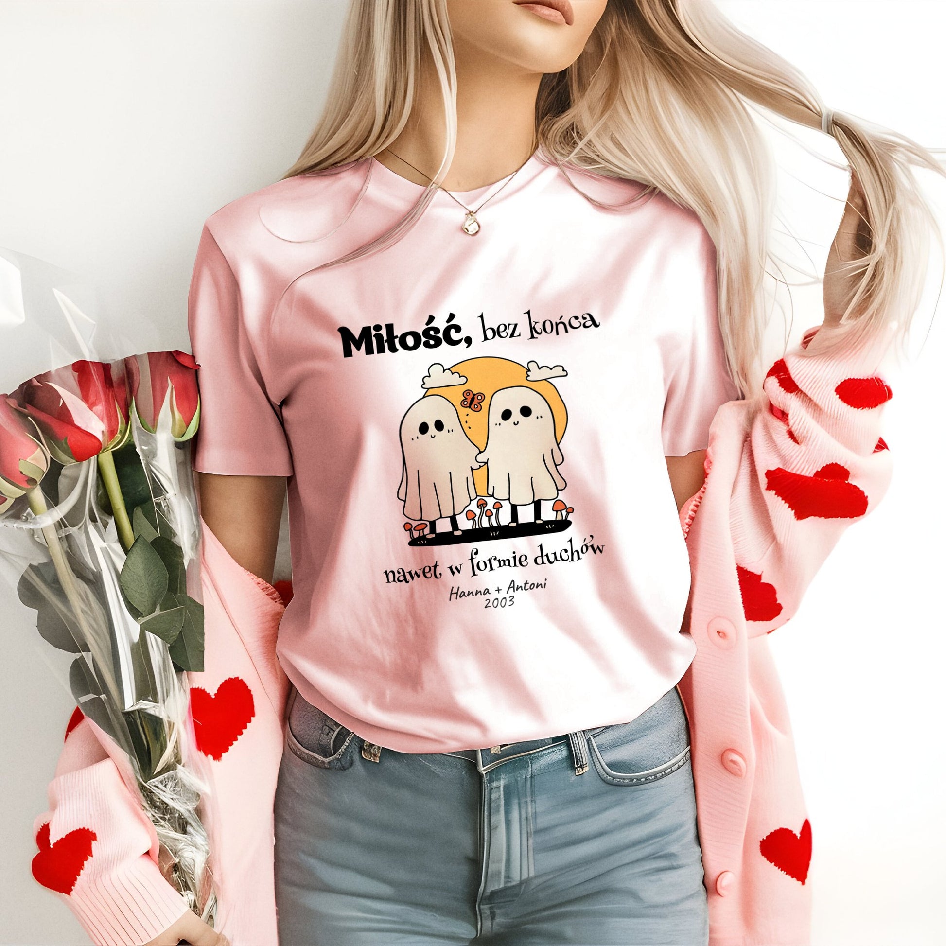 Wyraź swoją wieczną miłość z koszulką „Miłość, która przetrwa wszystko, nawet w formie duchów”. To wyjątkowy prezent na Walentynki, idealny dla tych, którzy wierzą, że prawdziwe uczucie nie zna granic. Miękki materiał i nowoczesny design sprawiają, że koszulka będzie zarówno wygodna, jak i pełna romantyzmu. Zaskocz ukochaną osobę nietuzinkowym upominkiem, który opowie Waszą historię!