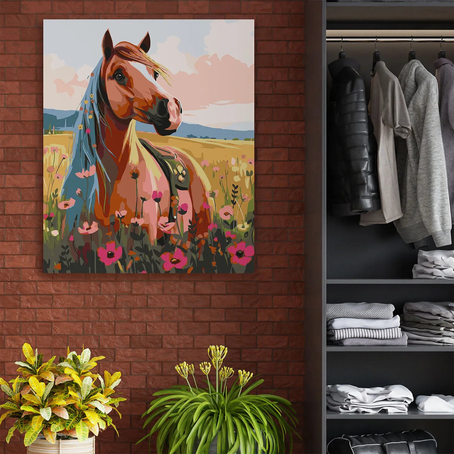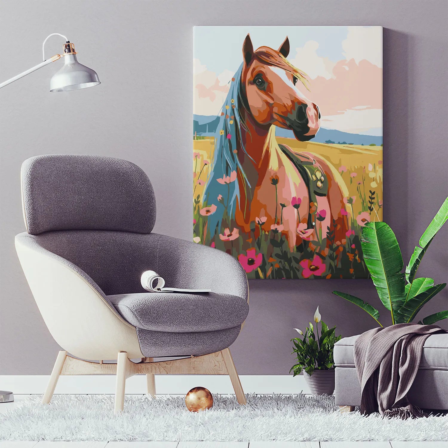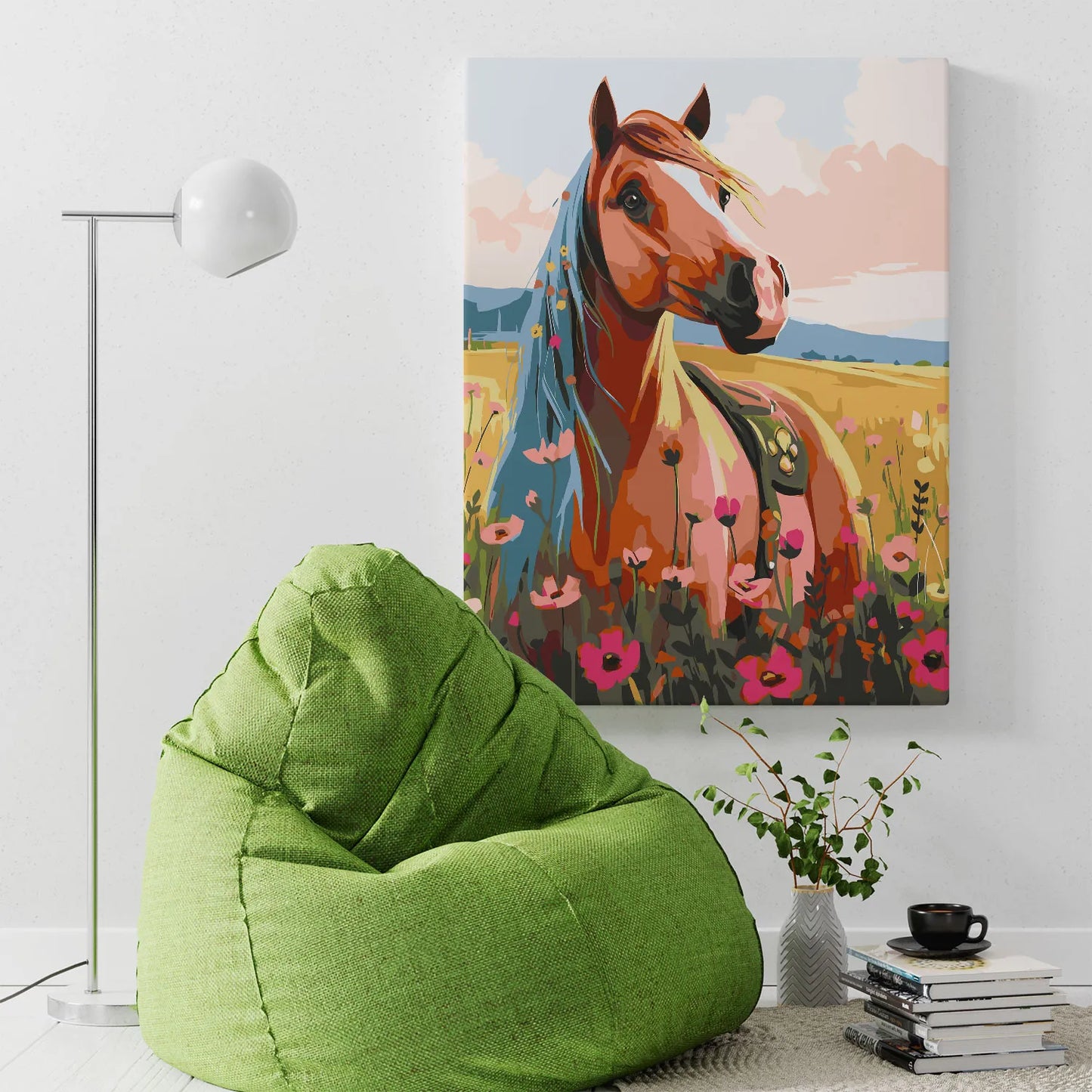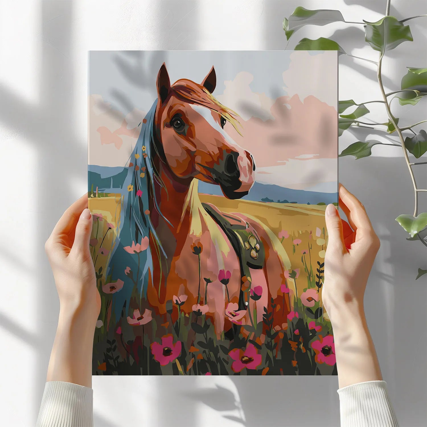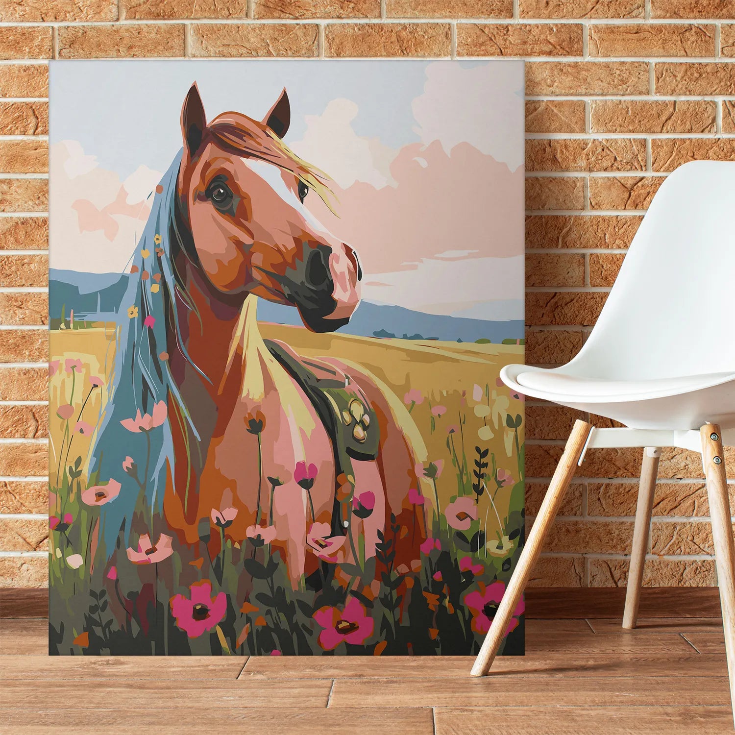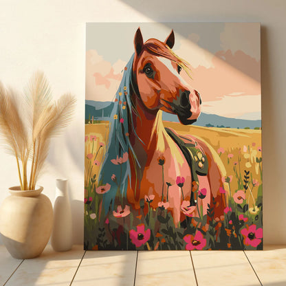 Poczuj wolność i piękno natury z obrazem po numerach „Koń na Letniej Łące”! Elegancki koń wśród kwitnących maków i złotych pól tworzy malowniczą, pełną ciepła i spokoju scenerię. To doskonały wybór dla miłośników koni, przyrody i sielskich krajobrazów. Malowanie po numerach pozwoli Ci się zrelaksować i stworzyć własne dzieło sztuki, które będzie idealną dekoracją wnętrza. Świetny pomysł na prezent dla pasjonatów zwierząt i sztuki.