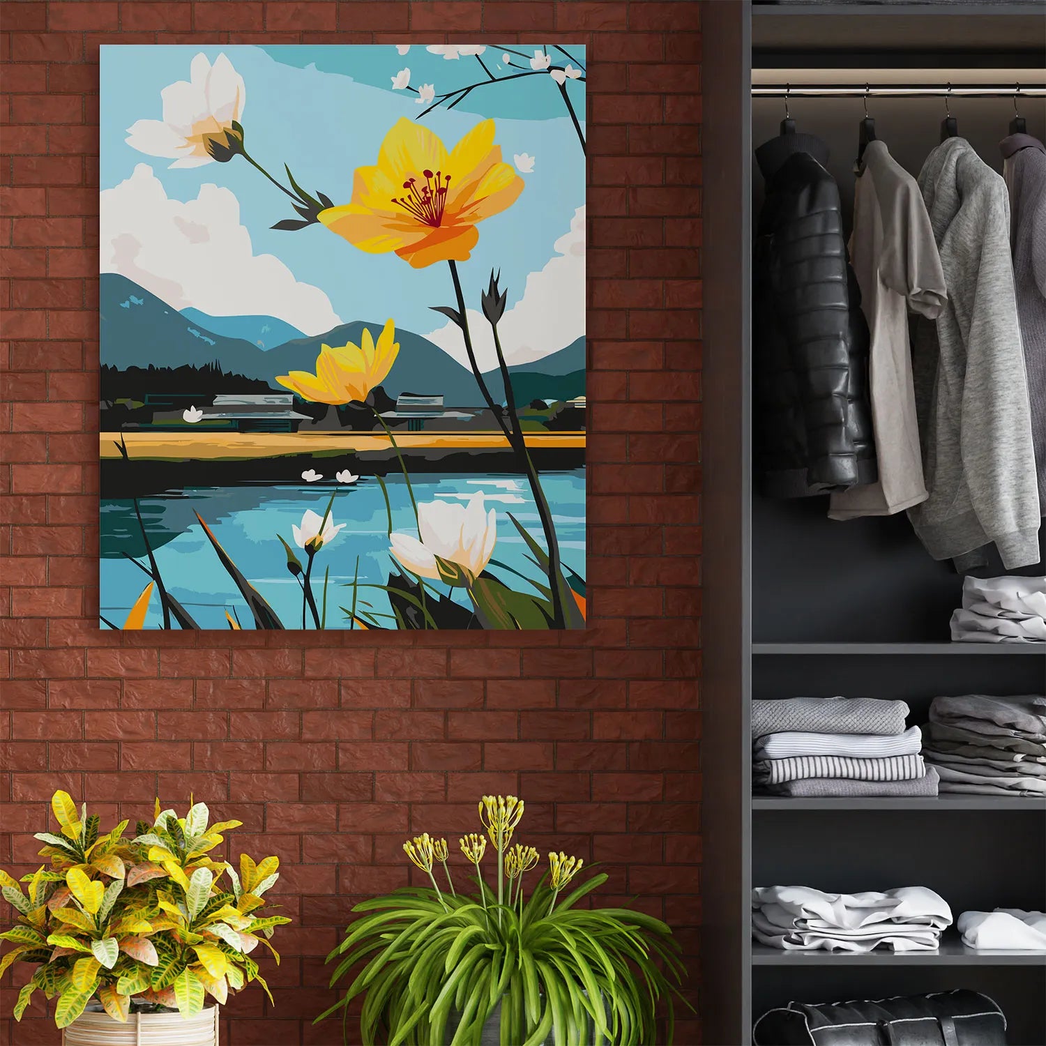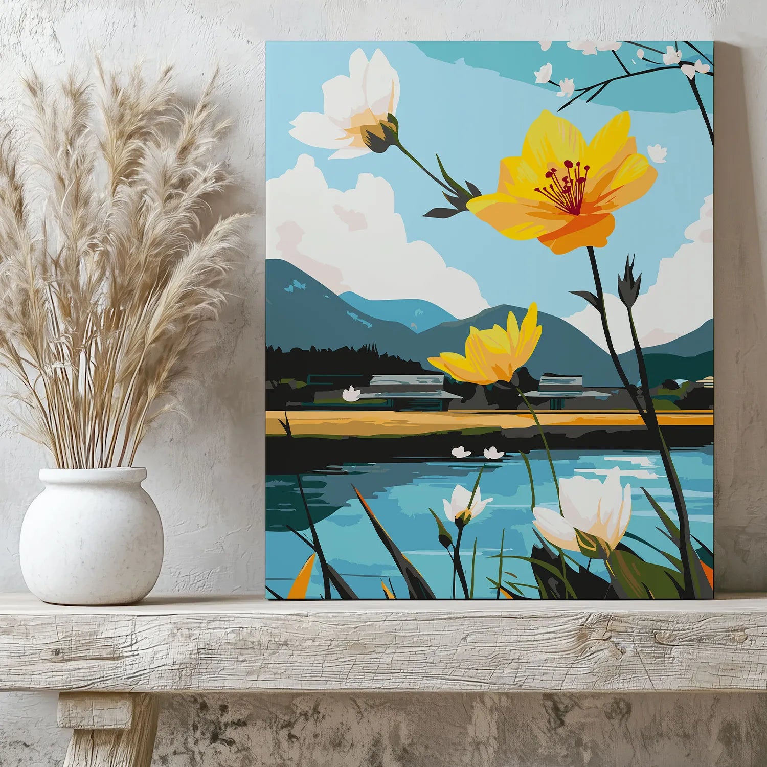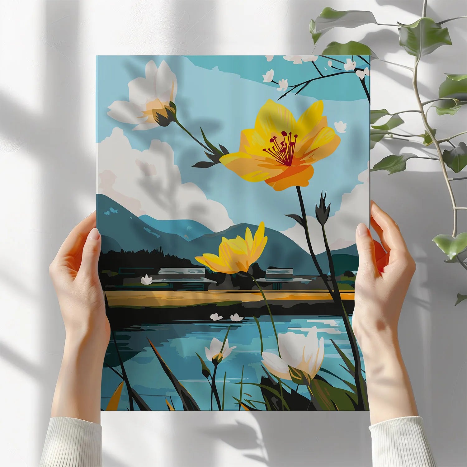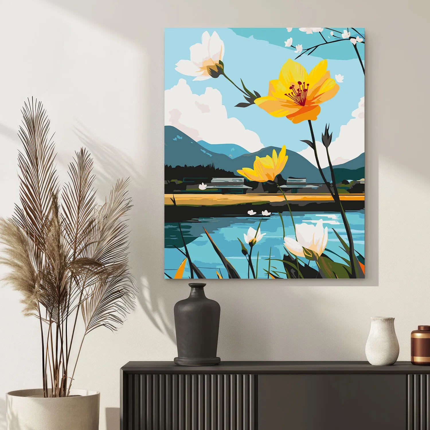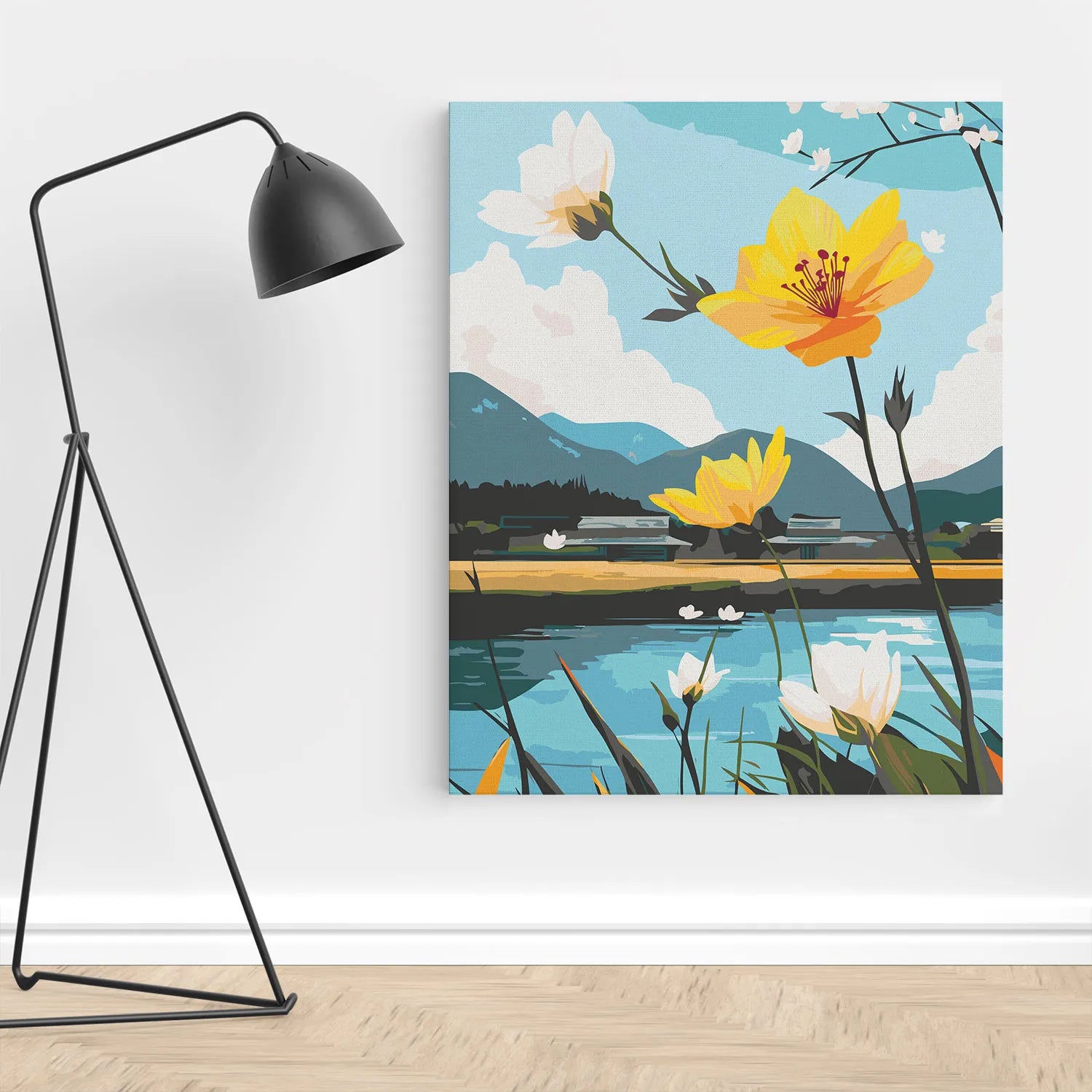 Zanurz się w spokoju natury i stwórz własne dzieło sztuki z obrazem po numerach „Kwiaty nad Jeziorem”! Ten piękny krajobraz z delikatnymi żółtymi i białymi kwiatami na tle gór i jeziora wprowadzi do Twojego wnętrza harmonię i świeżość. Dzięki ponumerowanemu płótnu malowanie jest proste i przyjemne, a końcowy efekt będzie zachwycać zarówno Ciebie, jak i Twoich bliskich. Idealny pomysł na prezent oraz stylową dekorację do domu.