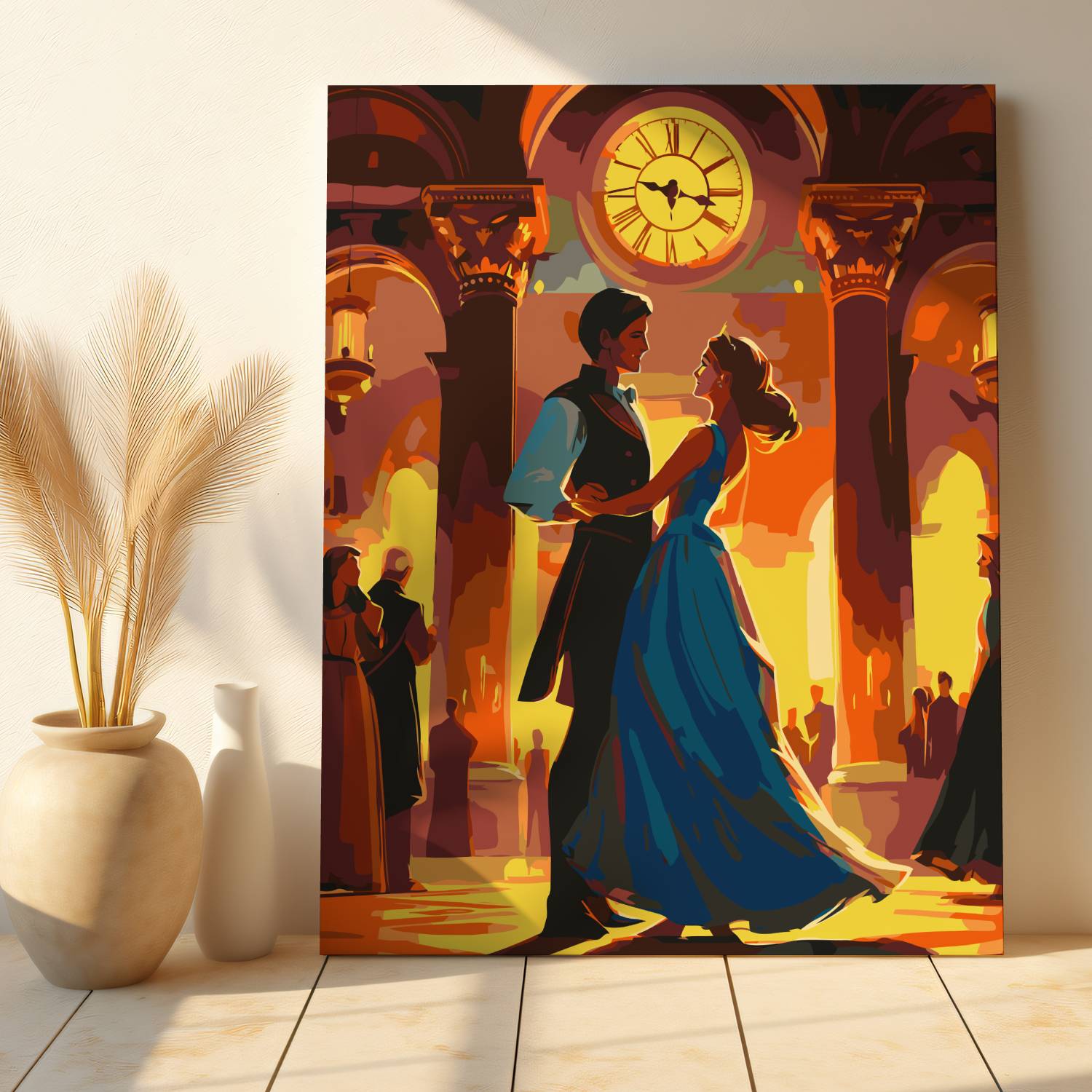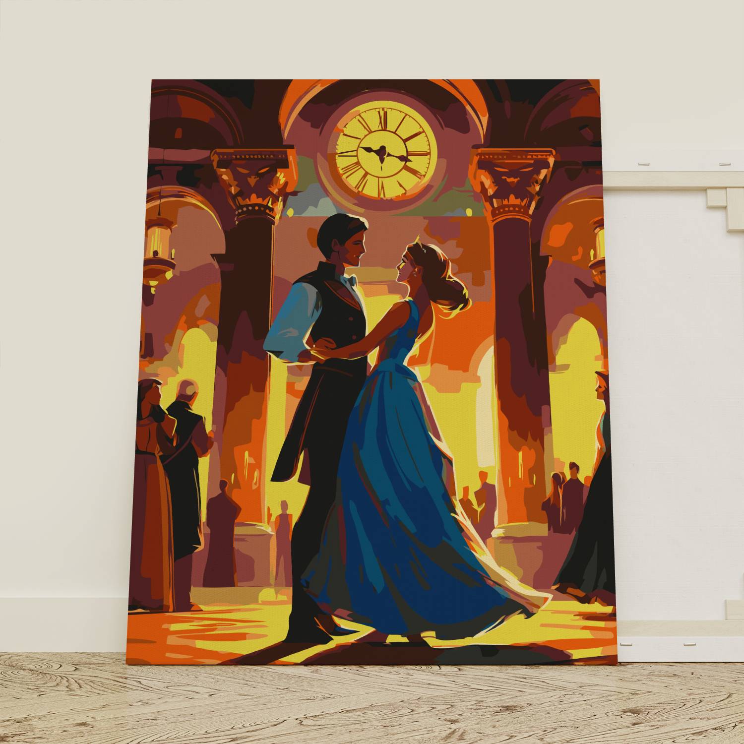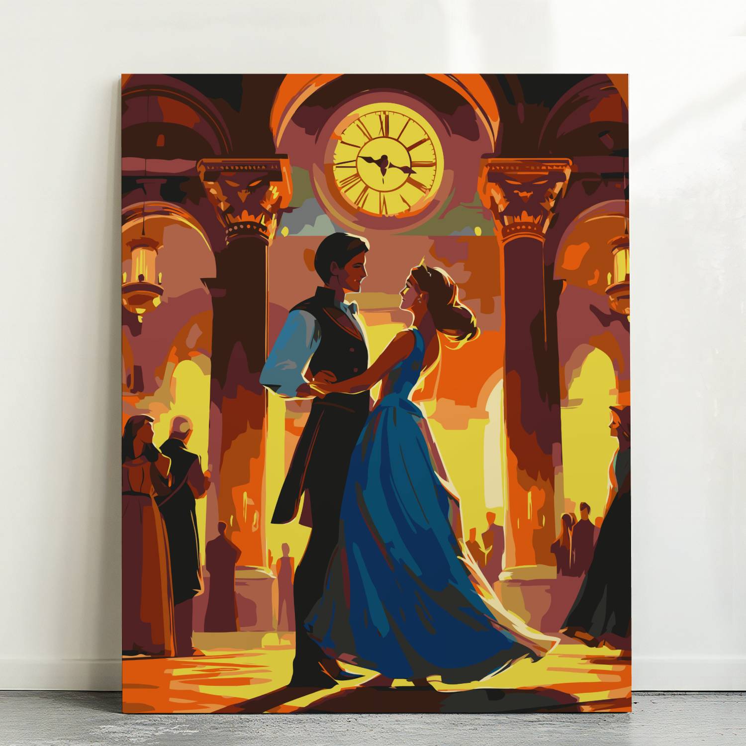 Poczuj magię chwili z obrazem po numerach „Zatańczmy Jeszcze Raz”! Elegancka para tańcząca w blasku złotego światła pod monumentalnym zegarem przenosi nas w świat balów, muzyki i miłości. Obraz pełen emocji i subtelnej elegancji zachwyca swoją atmosferą i kolorystyką. To idealny wybór dla romantycznych dusz oraz miłośników klasycznego piękna. Malowanie po numerach to świetny sposób na relaks i stworzenie własnego dzieła sztuki.