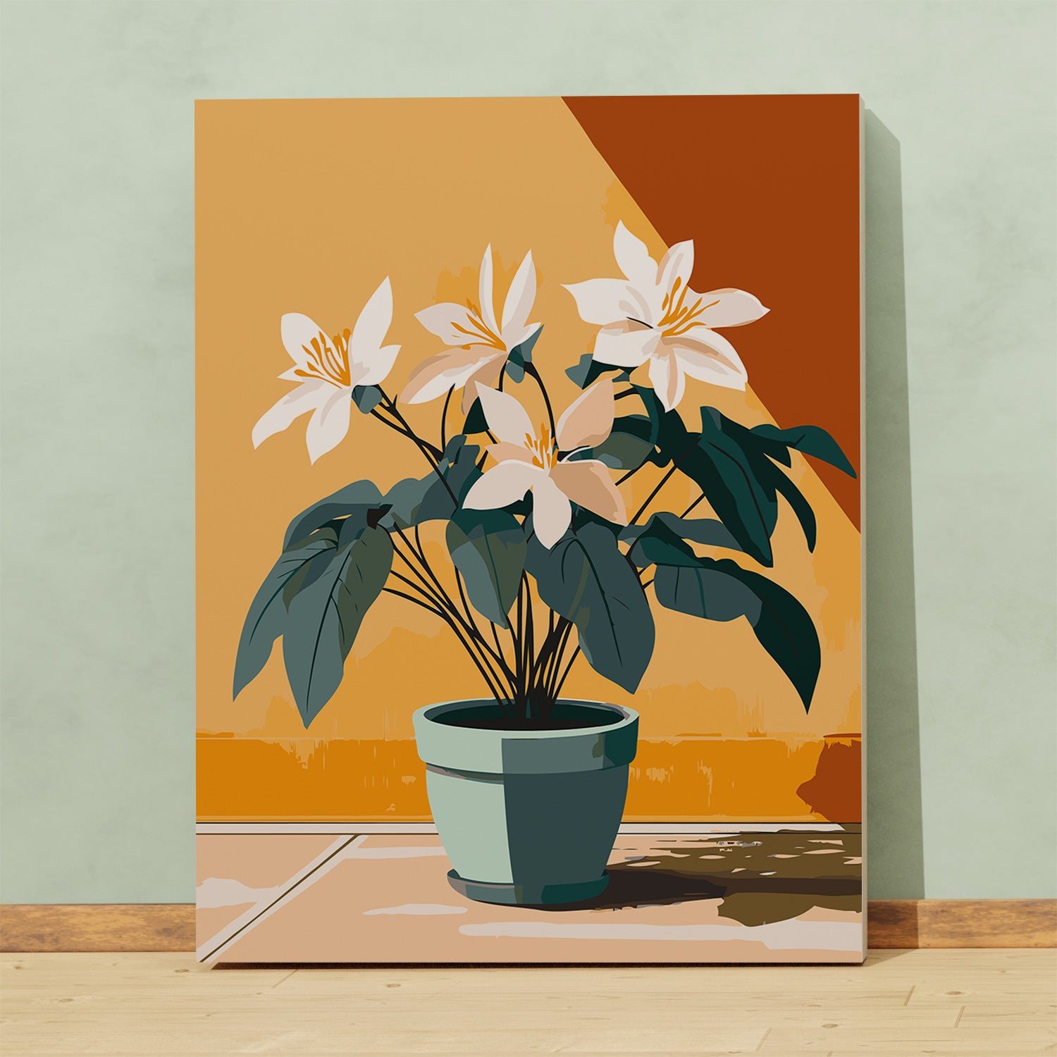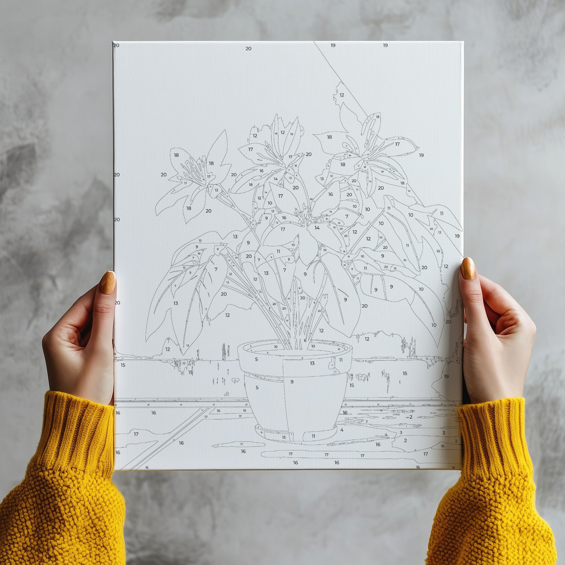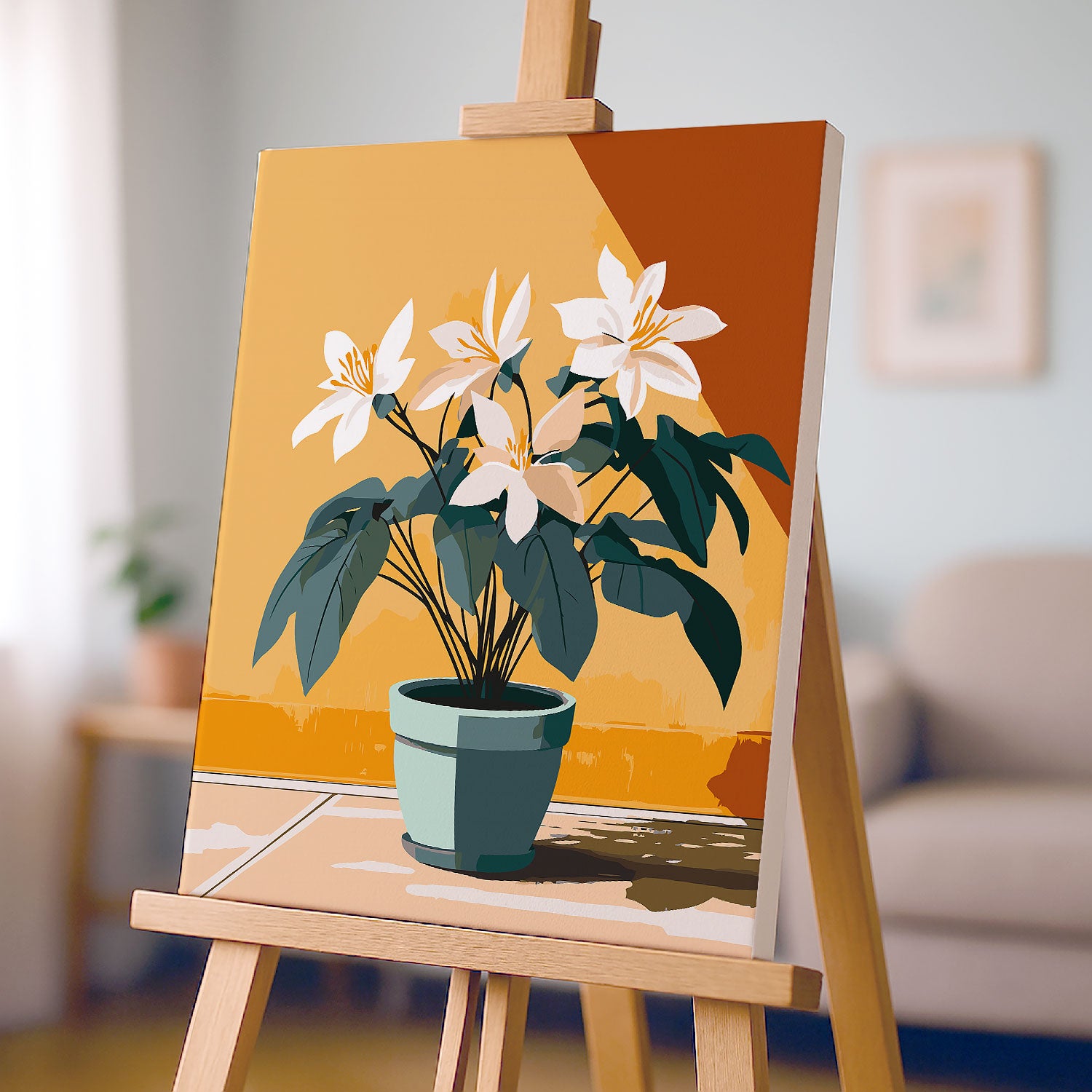 Wprowadź do swojego wnętrza nutę nowoczesnej elegancji dzięki obrazowi po numerach „Białe Kwiaty w Doniczce”. Minimalistyczna kompozycja jasnych kwiatów na tle ciepłych odcieni ściany rozświetli każdy salon, kuchnię lub biuro. Idealny wybór dla miłośników roślin domowych oraz relaksującego malowania po numerach – to sposób na odpoczynek, rozwój kreatywności i własnoręczne stworzenie stylowej dekoracji.