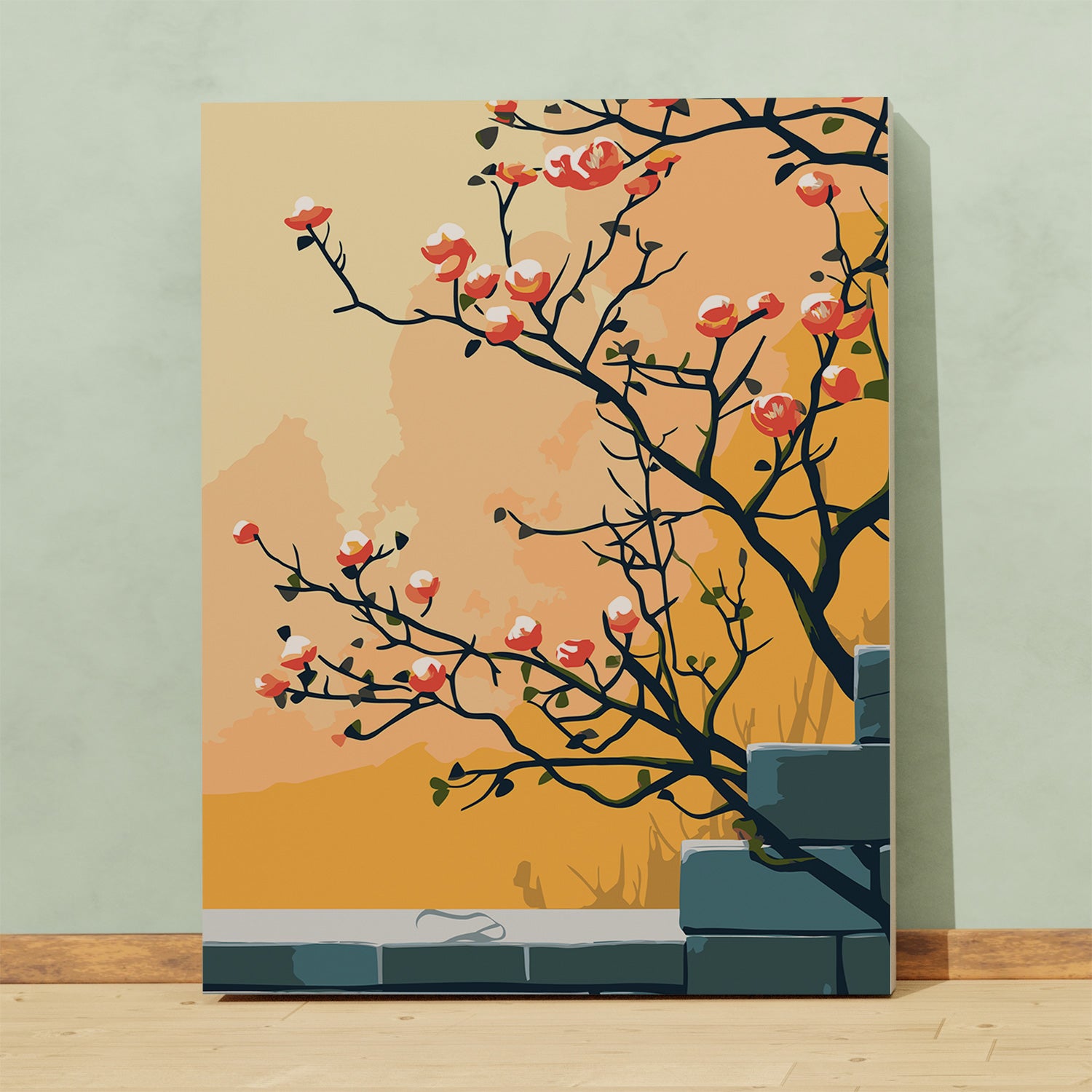 Wprowadź do swojego domu spokój oraz delikatność orientalnej natury dzięki obrazowi po numerach „Kwitnąca Gałąź przy Murze”. Piękna kompozycja subtelnych, różowych kwiatów na tle ciepłej ściany nada każdemu wnętrzu wyjątkowego charakteru. To idealny wybór dla osób szukających wyciszenia podczas malowania oraz dla miłośników sztuki inspirowanej Japonią i naturą. Tworzenie tego obrazu zapewnia nie tylko relaks, ale również własnoręcznie wykonaną ozdobę do salonu, sypialni lub biura.