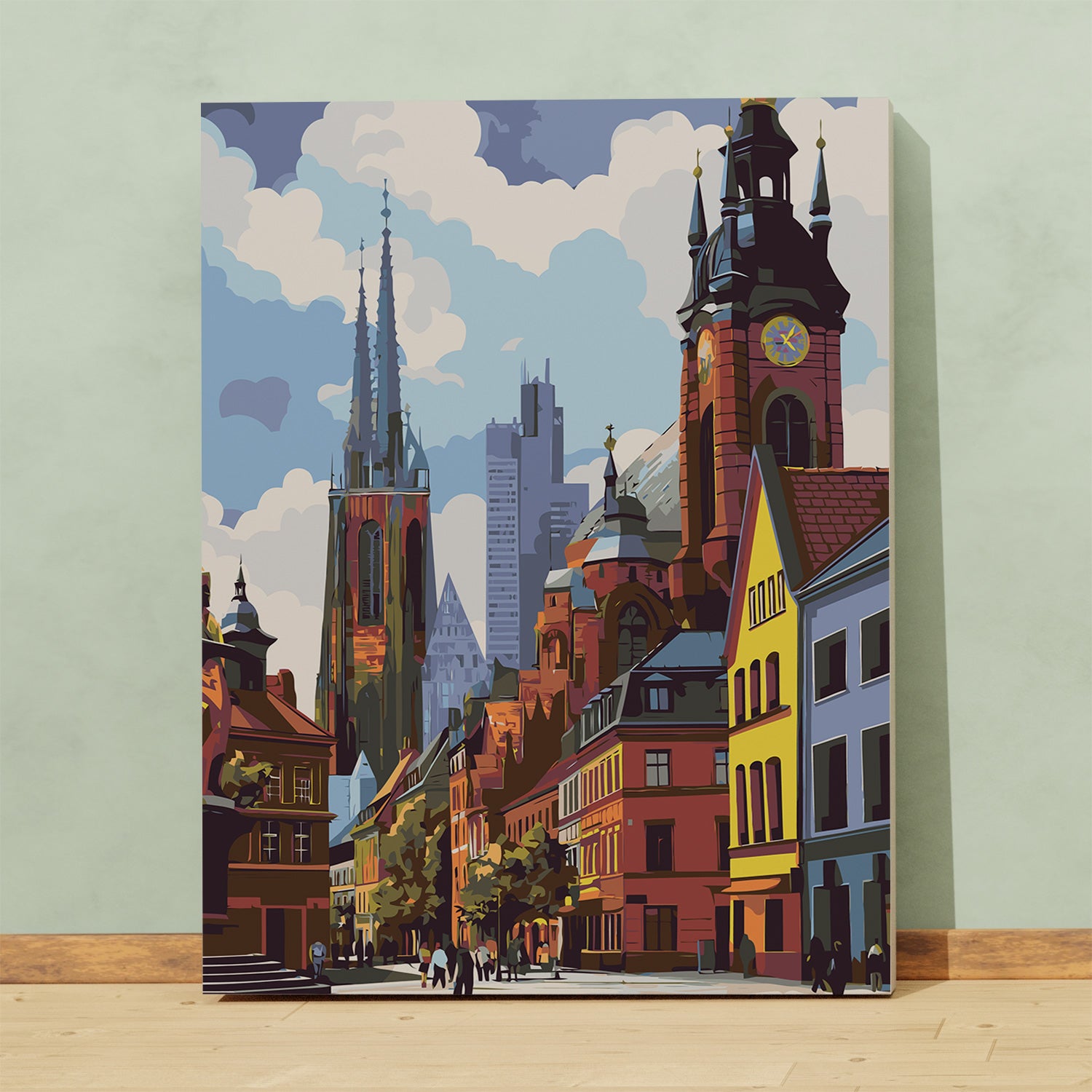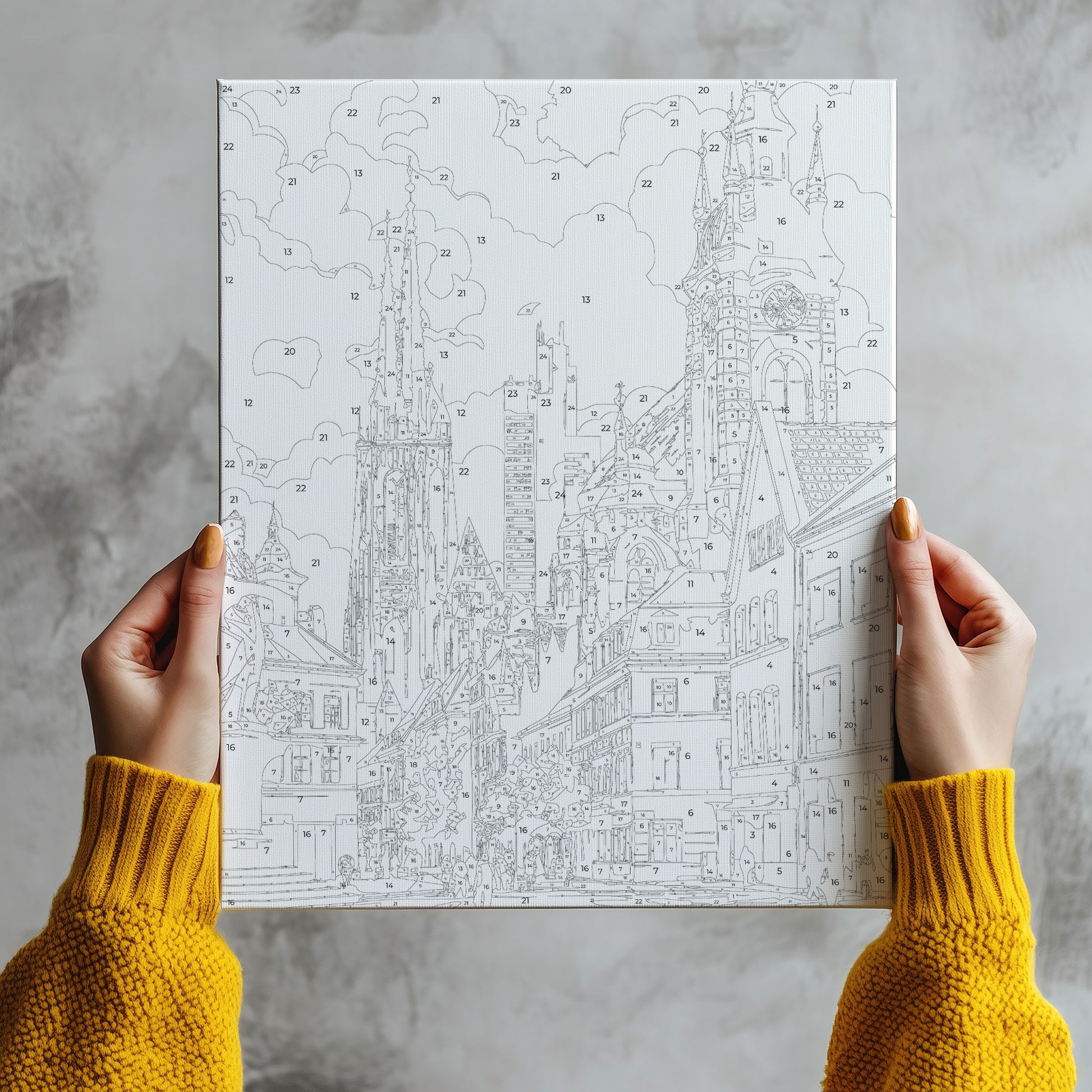 Zapraszamy do świata miejskiej elegancji! Nasz obraz po numerach „Europejskie Stare Miasto z Katedrą i Ratuszem” to wyjątkowa podróż przez piękne uliczki, monumentalne wieże i kolorowe kamieniczki. Klimatyczna scena pełna detali pozwoli Ci poczuć atmosferę historycznego centrum europejskiego miasta. To doskonały wybór na relaks po ciężkim dniu i pomysł na unikalną dekorację do domu. Malując, poczujesz dumę z własnego dzieła i zyskasz chwilę wytchnienia w artystycznym świecie.