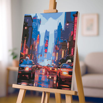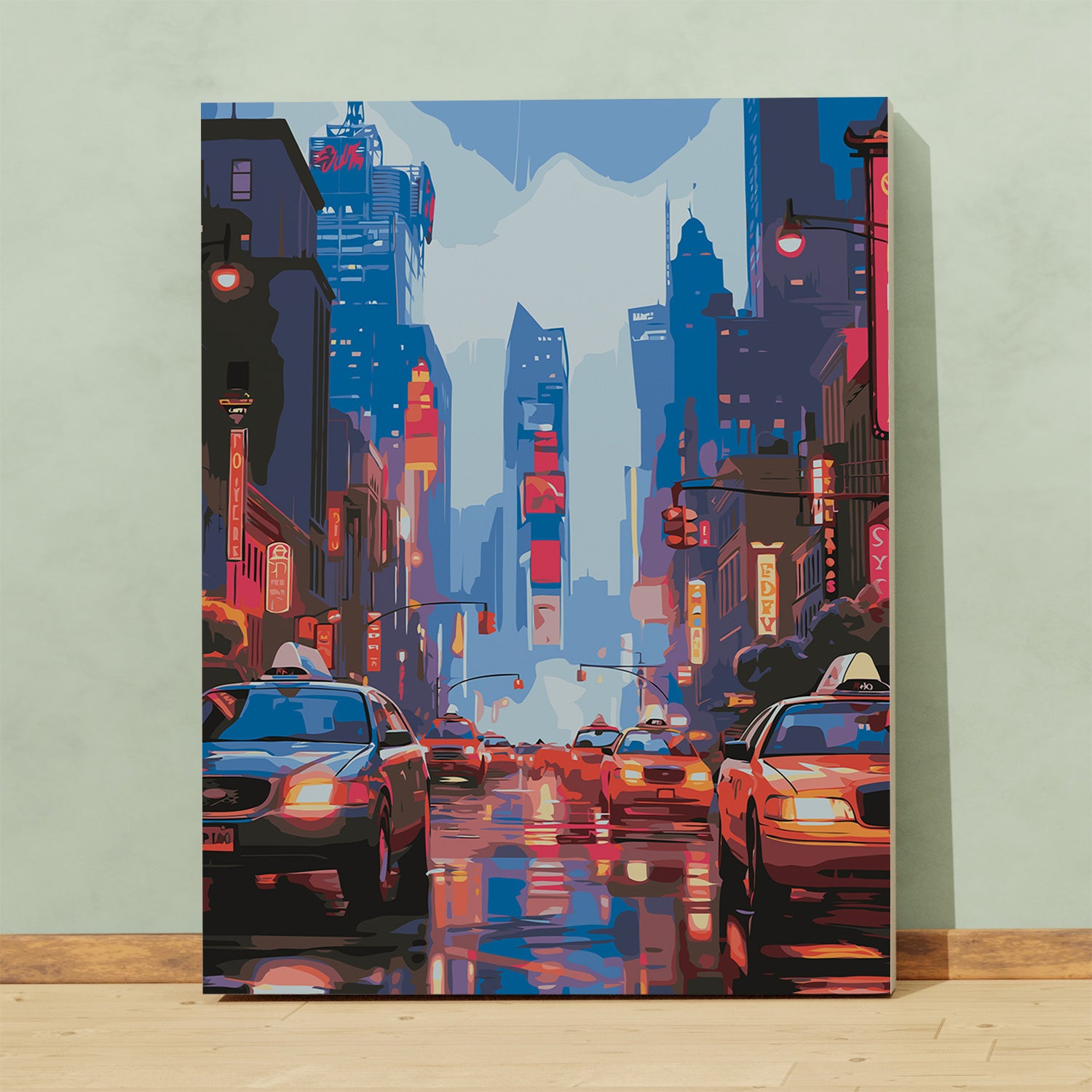 Przenieś się do tętniącego życiem serca Nowego Jorku! Ten obraz po numerach przedstawia kultowe żółte taksówki na legendarnym Times Square, otoczonym neonami i miejskim zgiełkiem. Idealny wybór dla fanów wielkomiejskiej atmosfery, podróży i nowoczesnych wnętrz. Własnoręcznie malując ten obraz, poczujesz klimat metropolii i stworzysz wyjątkową dekorację do salonu, sypialni lub biura.
