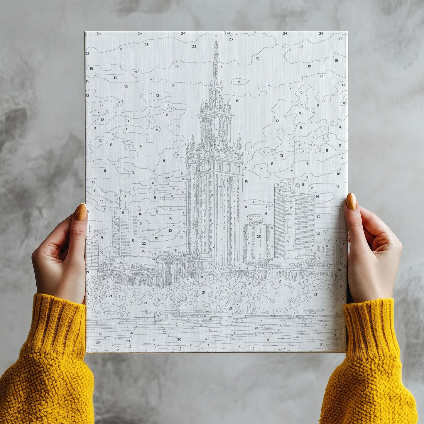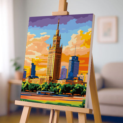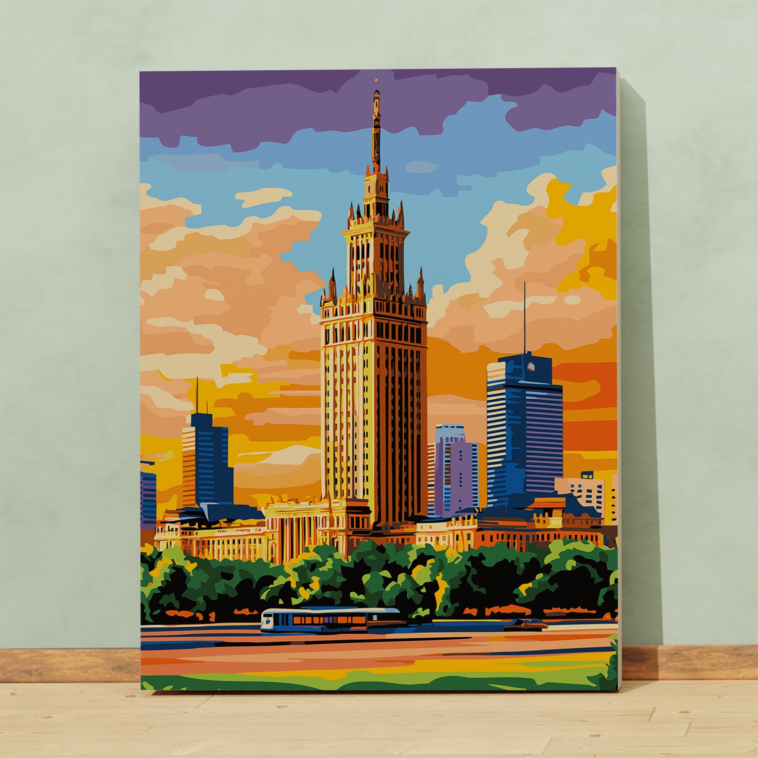 Poczuj magię Warszawy i złap wyjątkowy moment, gdy Pałac Kultury i Nauki tonie w ciepłych promieniach zachodzącego słońca! Ten obraz po numerach to nie tylko relaks, ale także sposób na stworzenie własnej dekoracji z panoramą polskiej stolicy. Zestaw zachwyci miłośników architektury, miejskiego klimatu i barwnych, nowoczesnych wnętrz. Malowanie po numerach to doskonały pomysł na prezent oraz świetna zabawa dla całej rodziny!