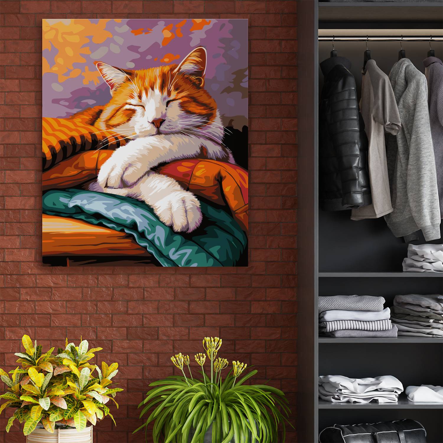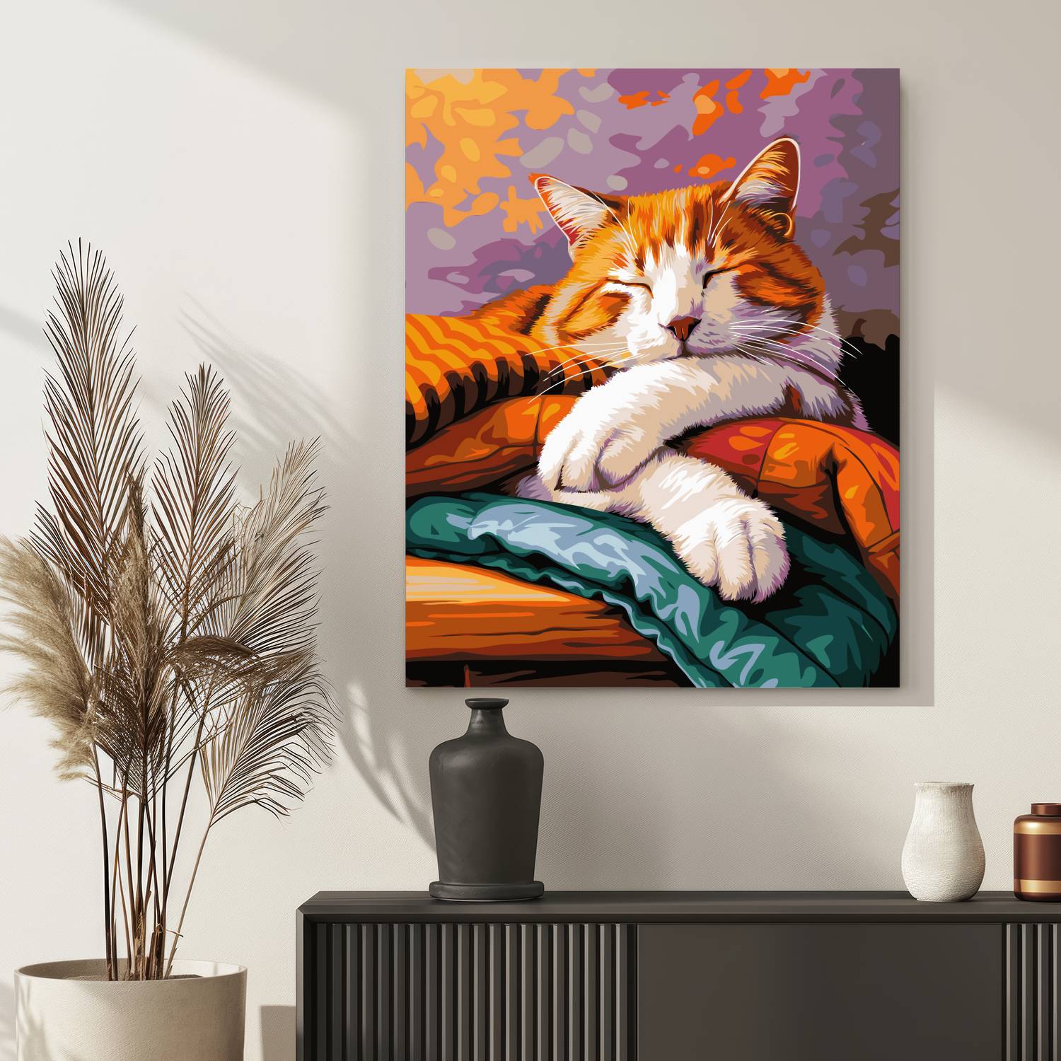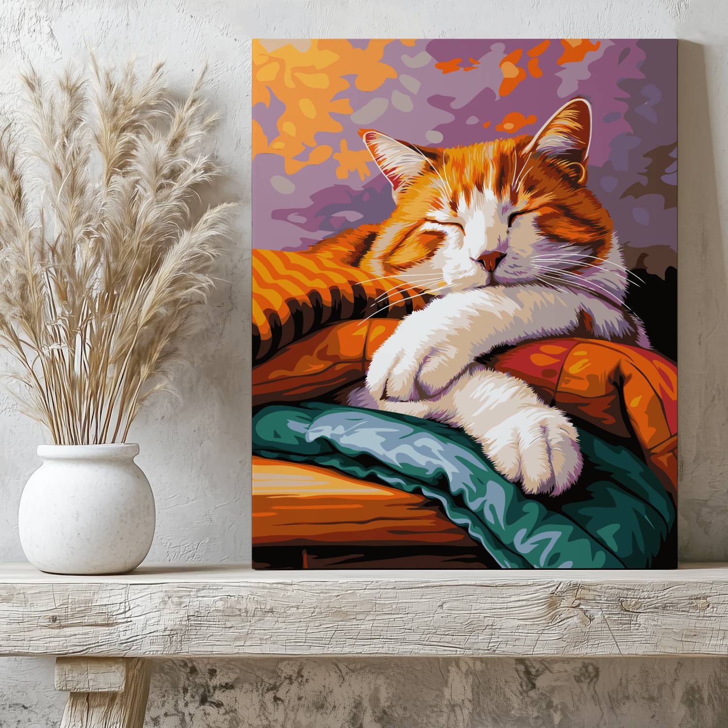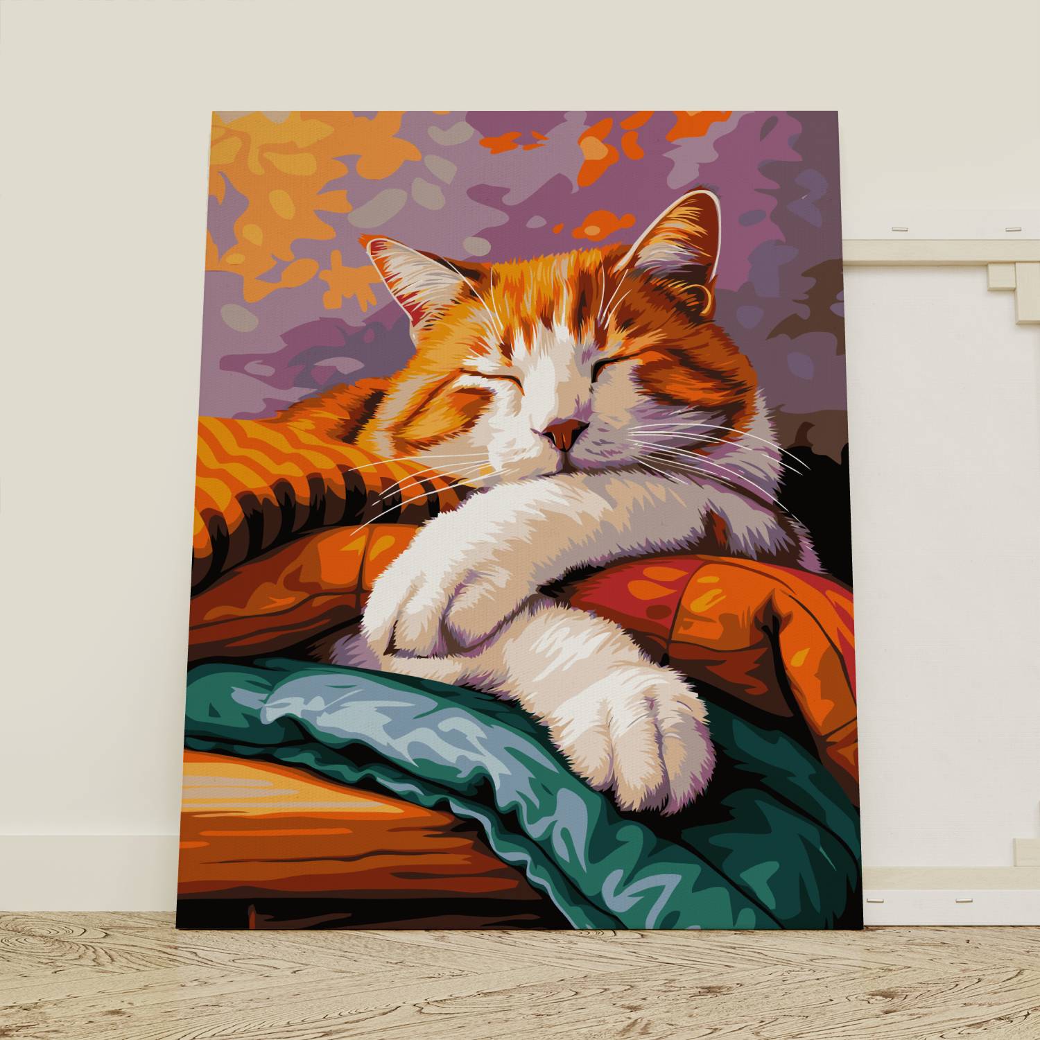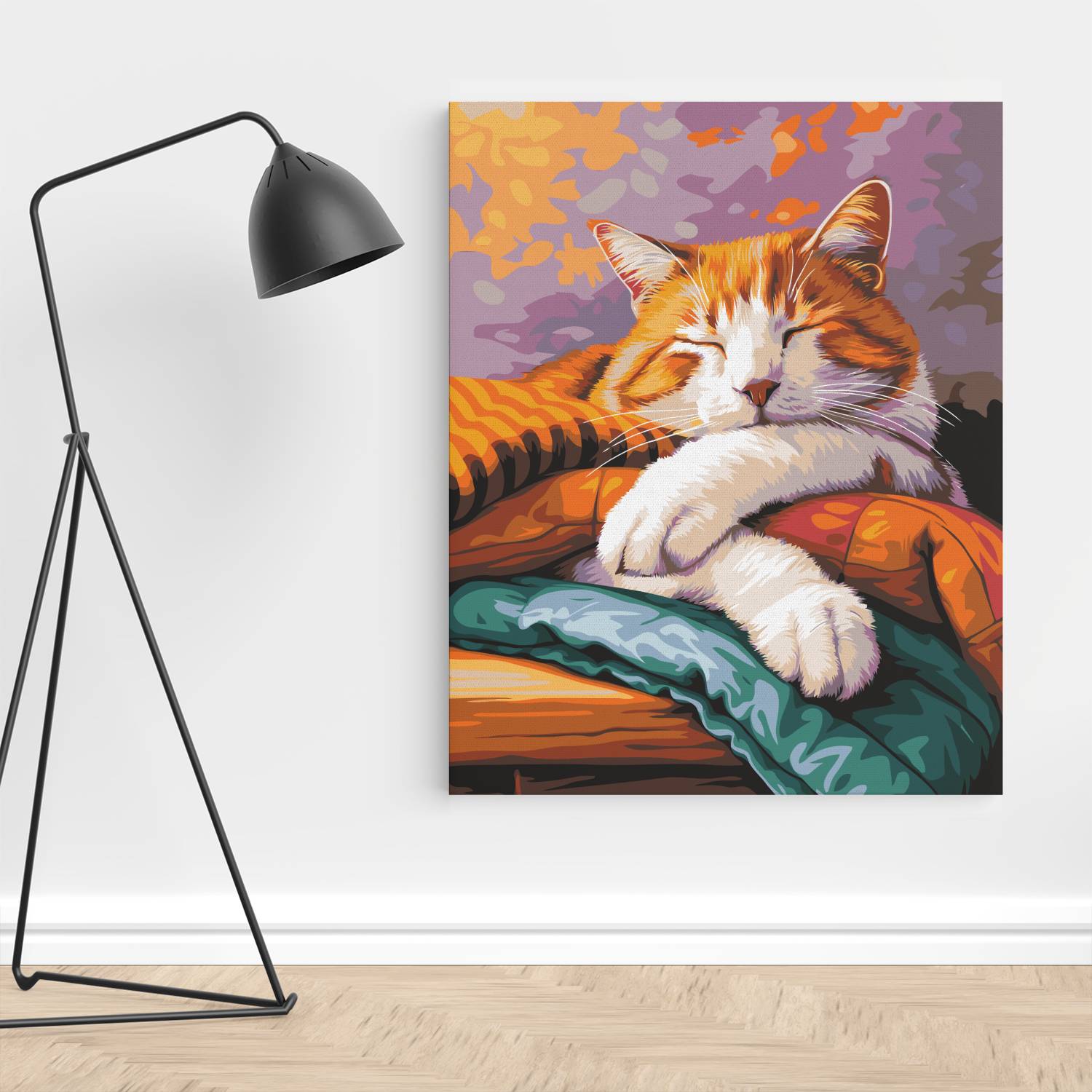 Stwórz obraz pełen czułości i relaksu z zestawem do malowania po numerach „Śpiący Kotek”! Uroczy rudzielec pogrążony w błogim śnie na kolorowych kocach emanuje spokojem i domowym ciepłem. Idealna scena do stworzenia w chwilach odprężenia, która ozdobi każde wnętrze przytulnym akcentem. Malowanie po numerach to świetny sposób na odpoczynek i twórcze wyrażenie siebie. Idealny prezent dla wszystkich miłośników kotów i spokojnych wieczorów.