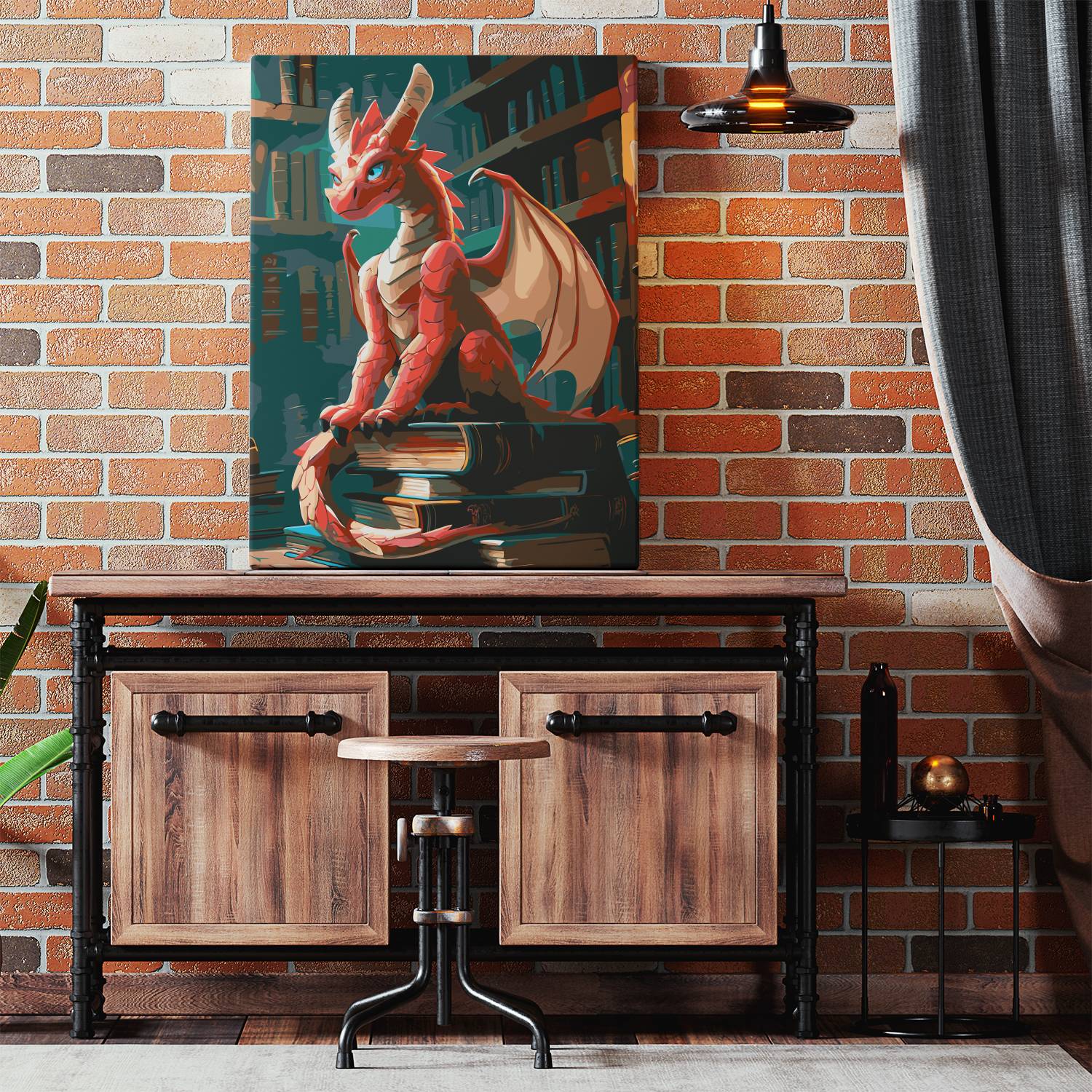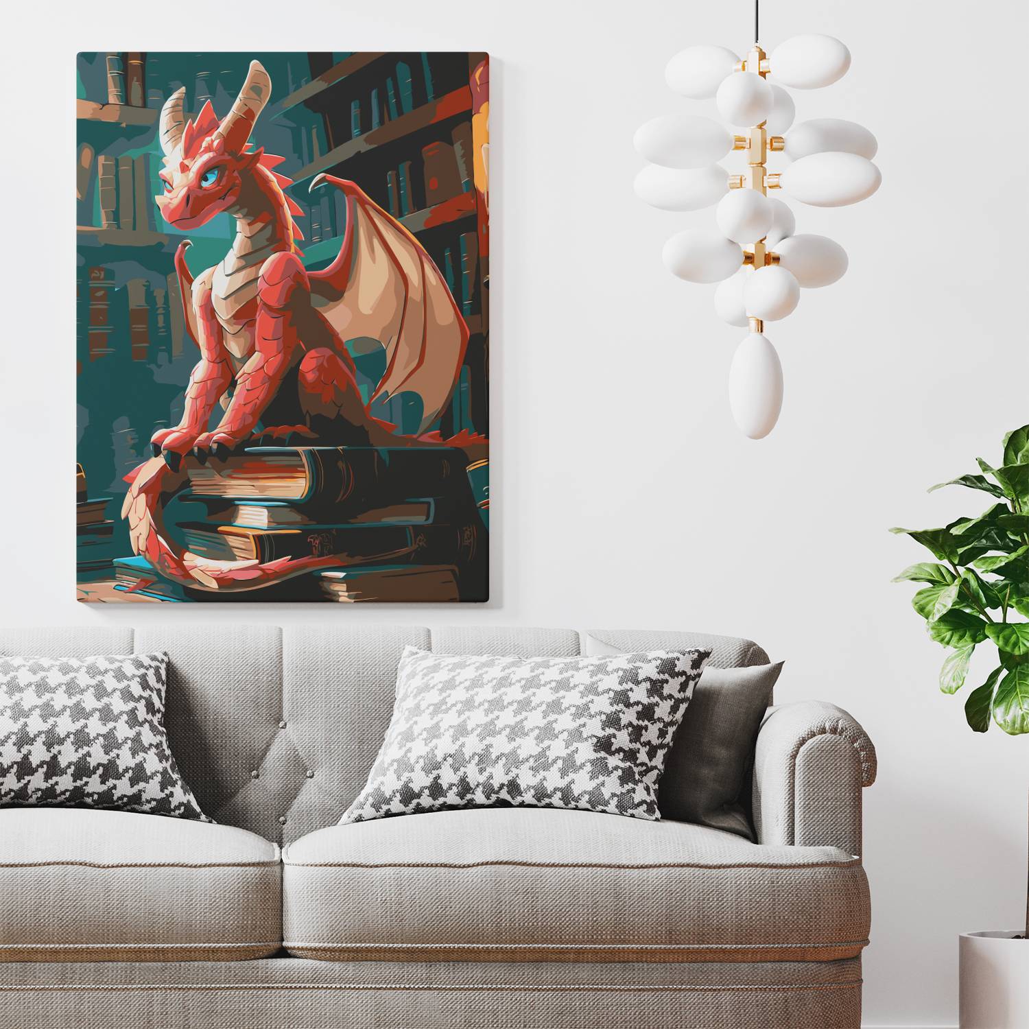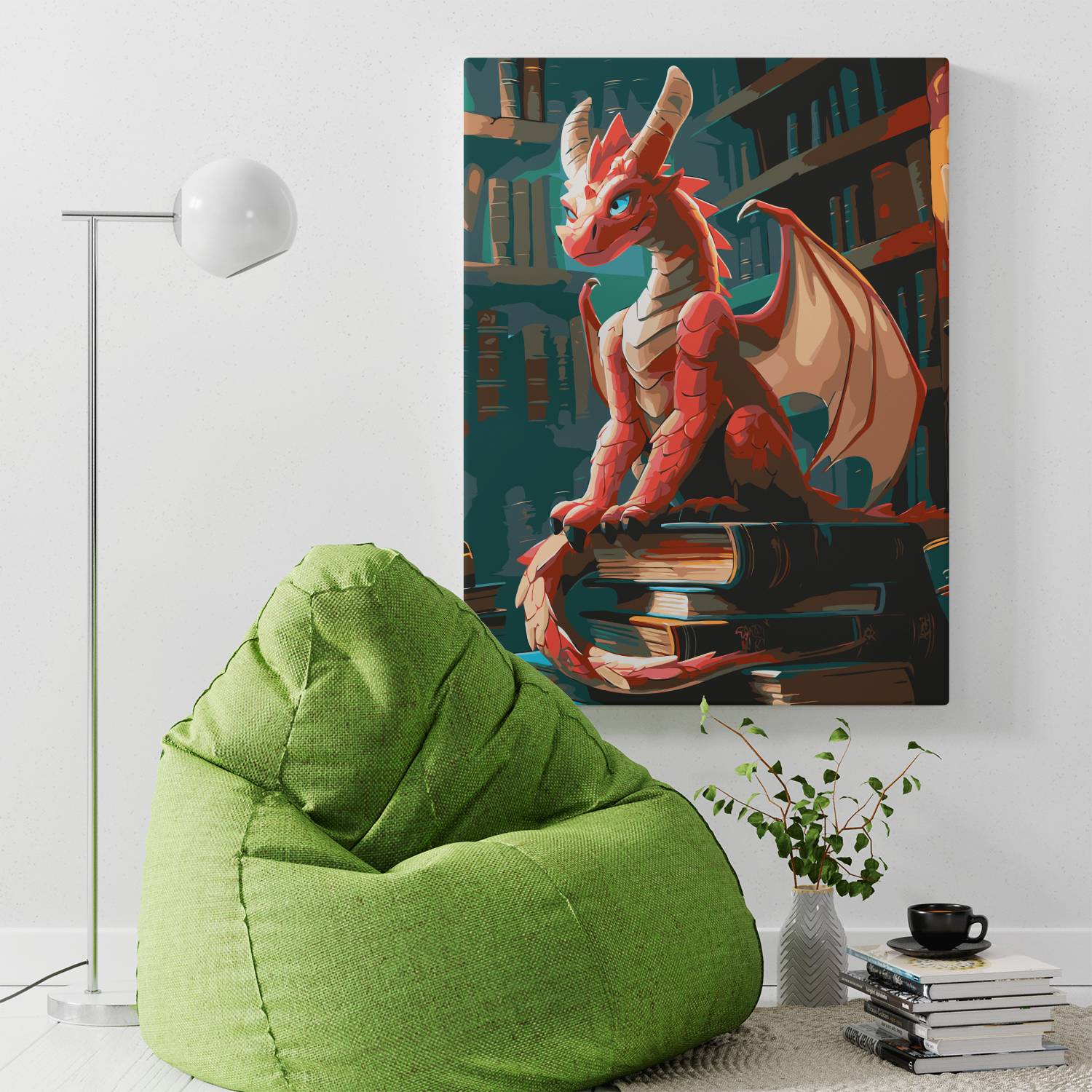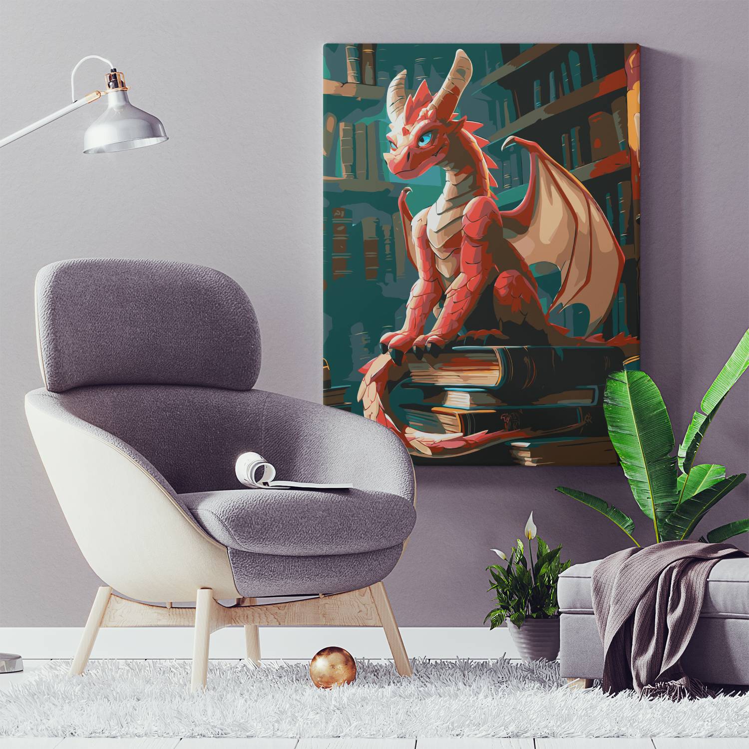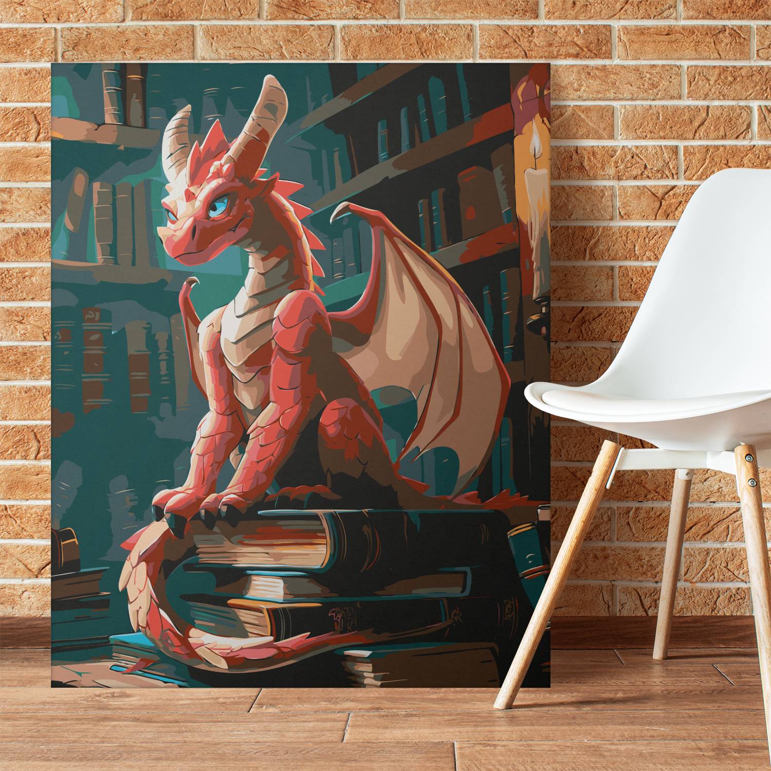 Przenieś się do świata wyobraźni z obrazem po numerach „Smok Strażnik Ksiąg”! Uroczy, ale potężny czerwony smok zasiadający na stosie starych ksiąg to idealna scena dla fanów fantasy, baśni i magicznych bibliotek. Obraz łączy w sobie przygodę, tajemnicę i mądrość ukrytą w książkach. Malowanie po numerach to świetna forma relaksu i kreatywności, a gotowe dzieło wprowadzi wyjątkowy klimat do każdego wnętrza. Doskonały pomysł na prezent dla miłośników smoków, książek i fantastyki.