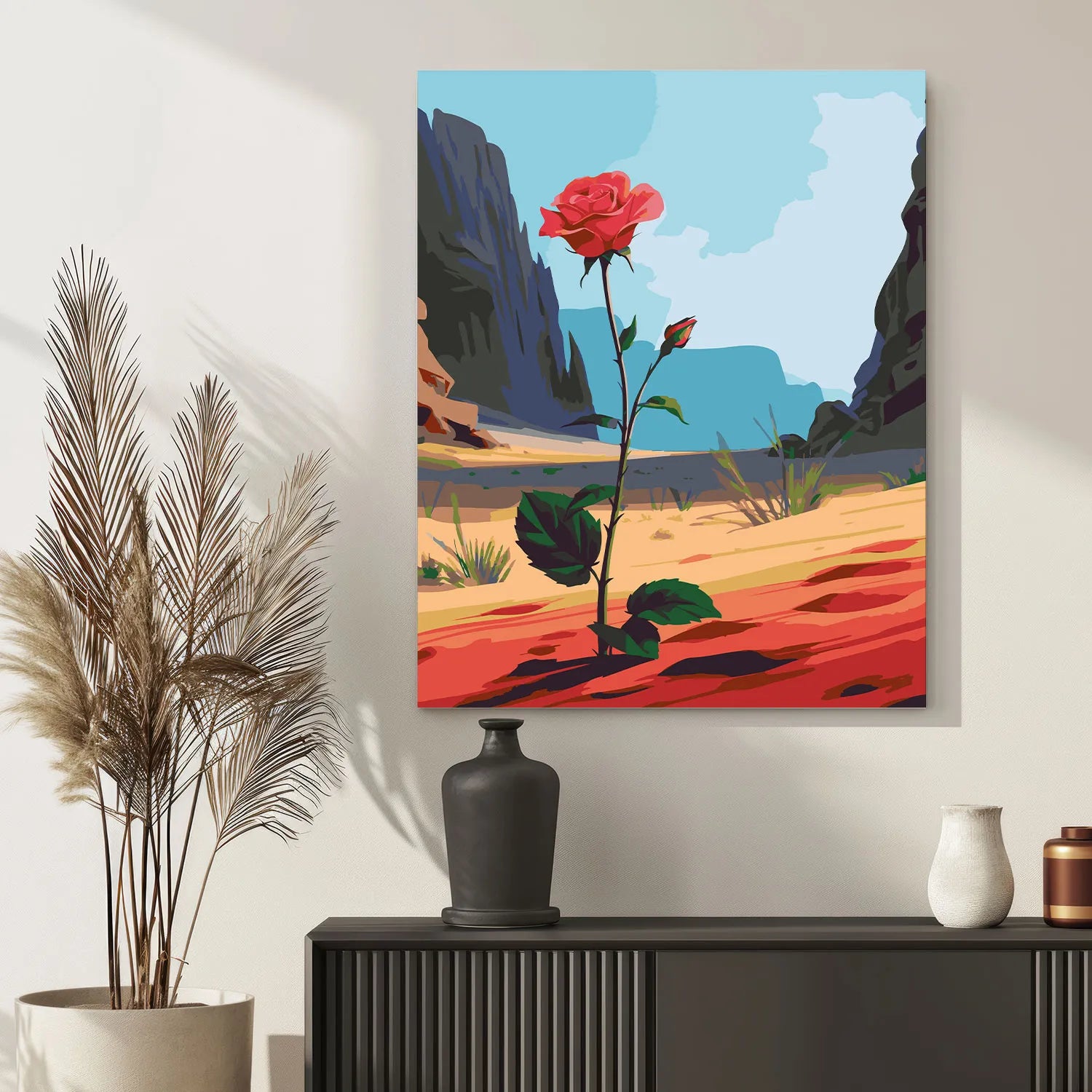 Odkryj niezwykłą harmonię natury i sztuki z obrazem po numerach „Róża na Pustyni”! Ta wyjątkowa kompozycja przedstawia delikatną różę rosnącą pośród surowego krajobrazu, symbolizującą siłę, wytrwałość i piękno. Malowanie po numerach to doskonały sposób na relaks i rozwijanie kreatywności. Dzięki ponumerowanemu płótnu i starannie dobranym kolorom nawet początkujący mogą cieszyć się wspaniałym efektem końcowym. Idealny pomysł na prezent i unikalną dekorację wnętrza.