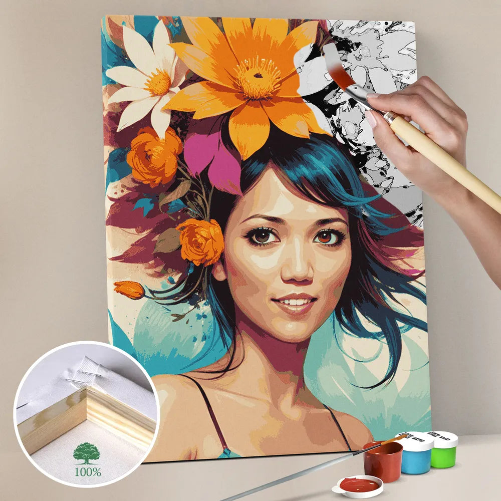 Zestaw Paint by Numbers „Tęczowa kobieta w kwiaty”