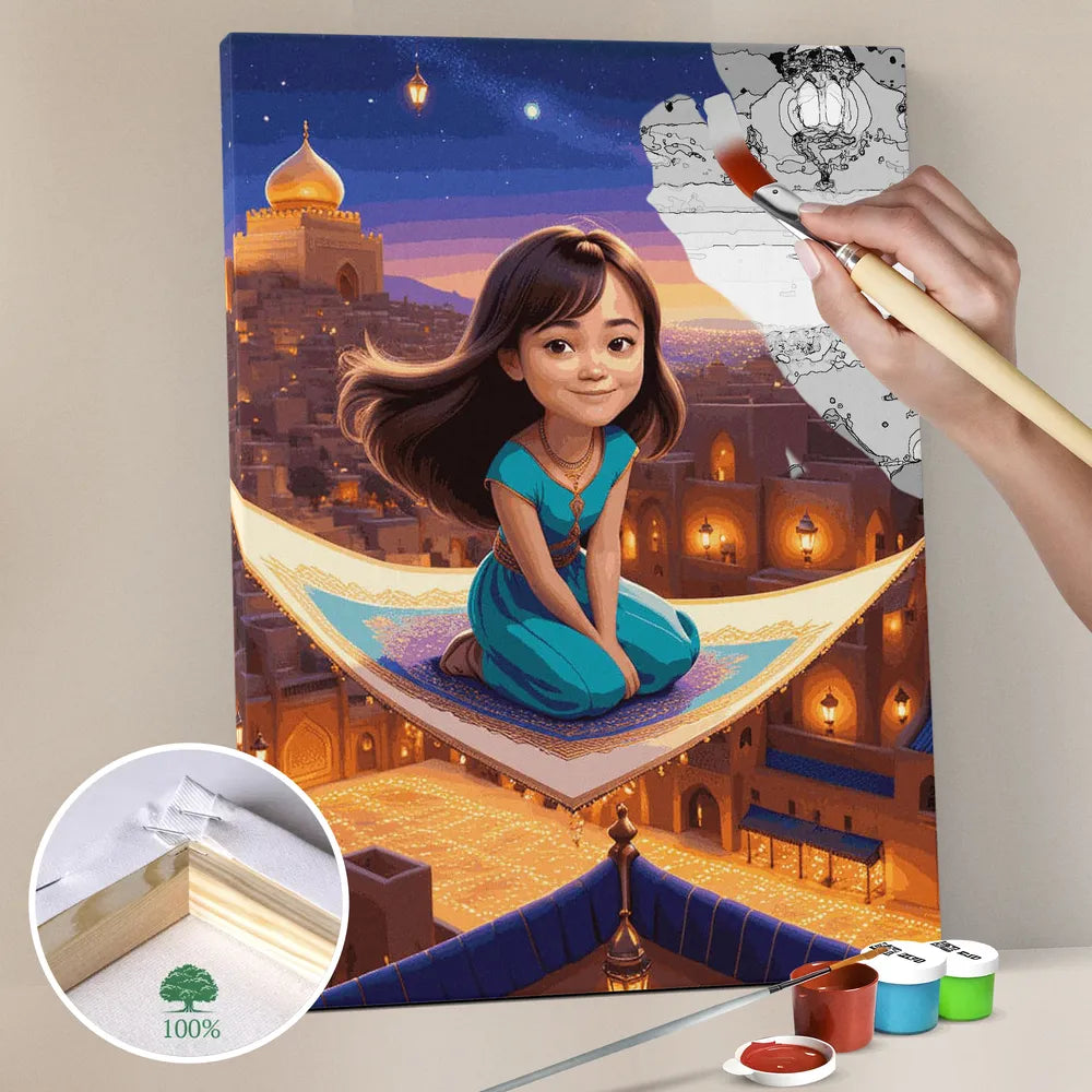 Zestaw do malowania po numerach „Magiczna przygoda na dywanie”.