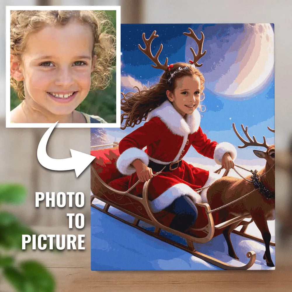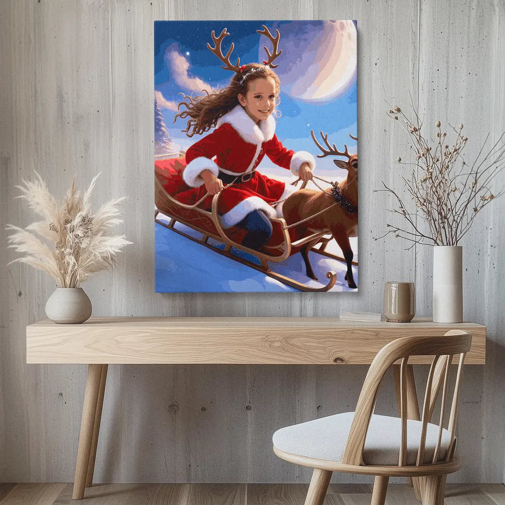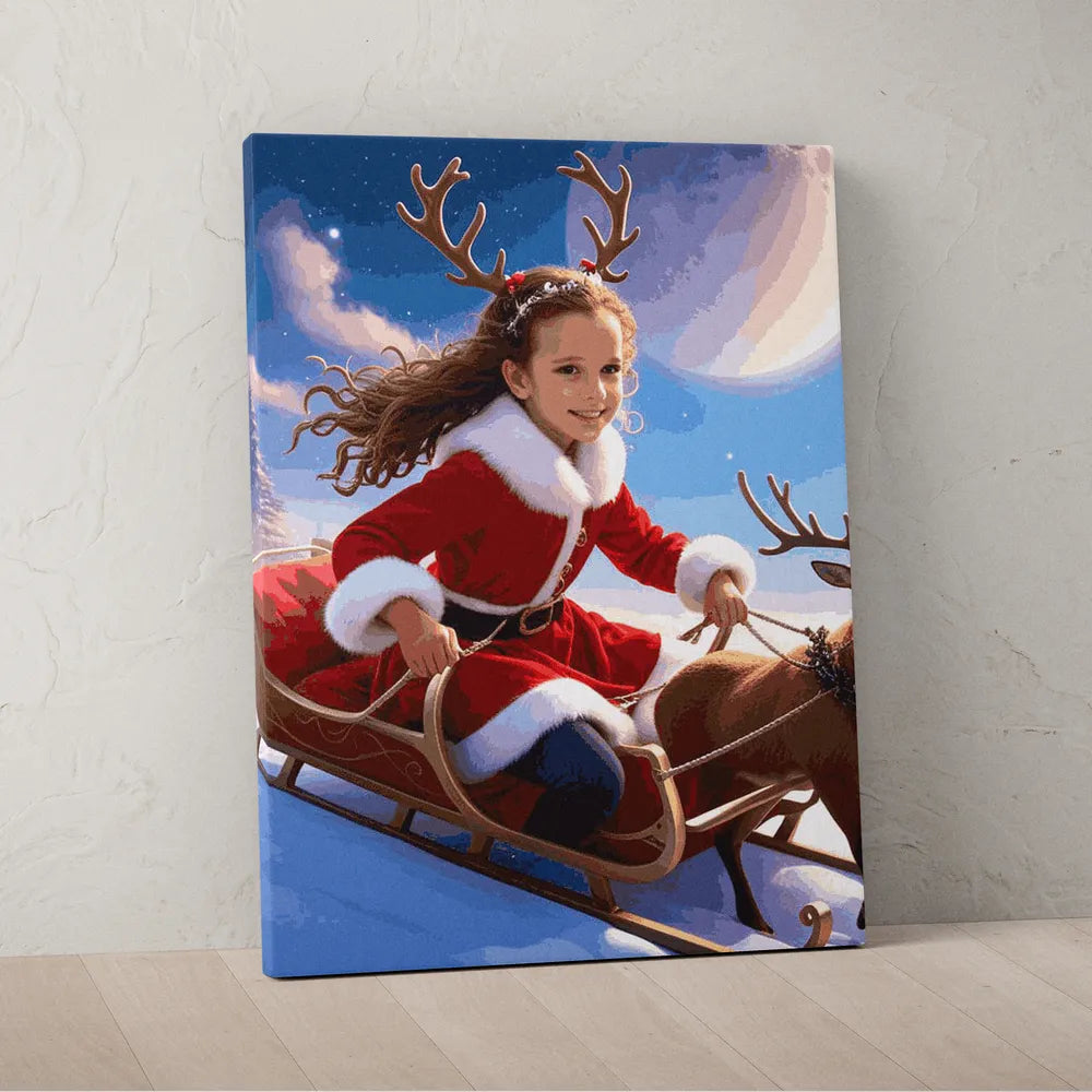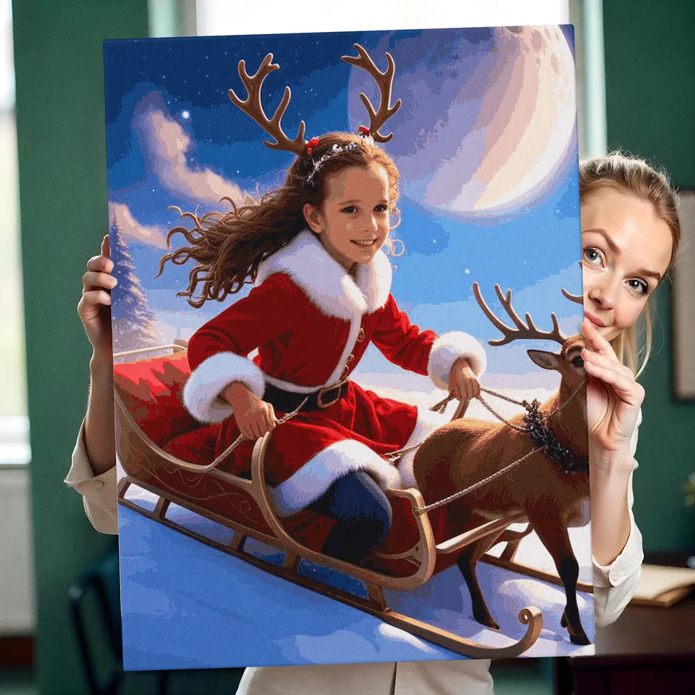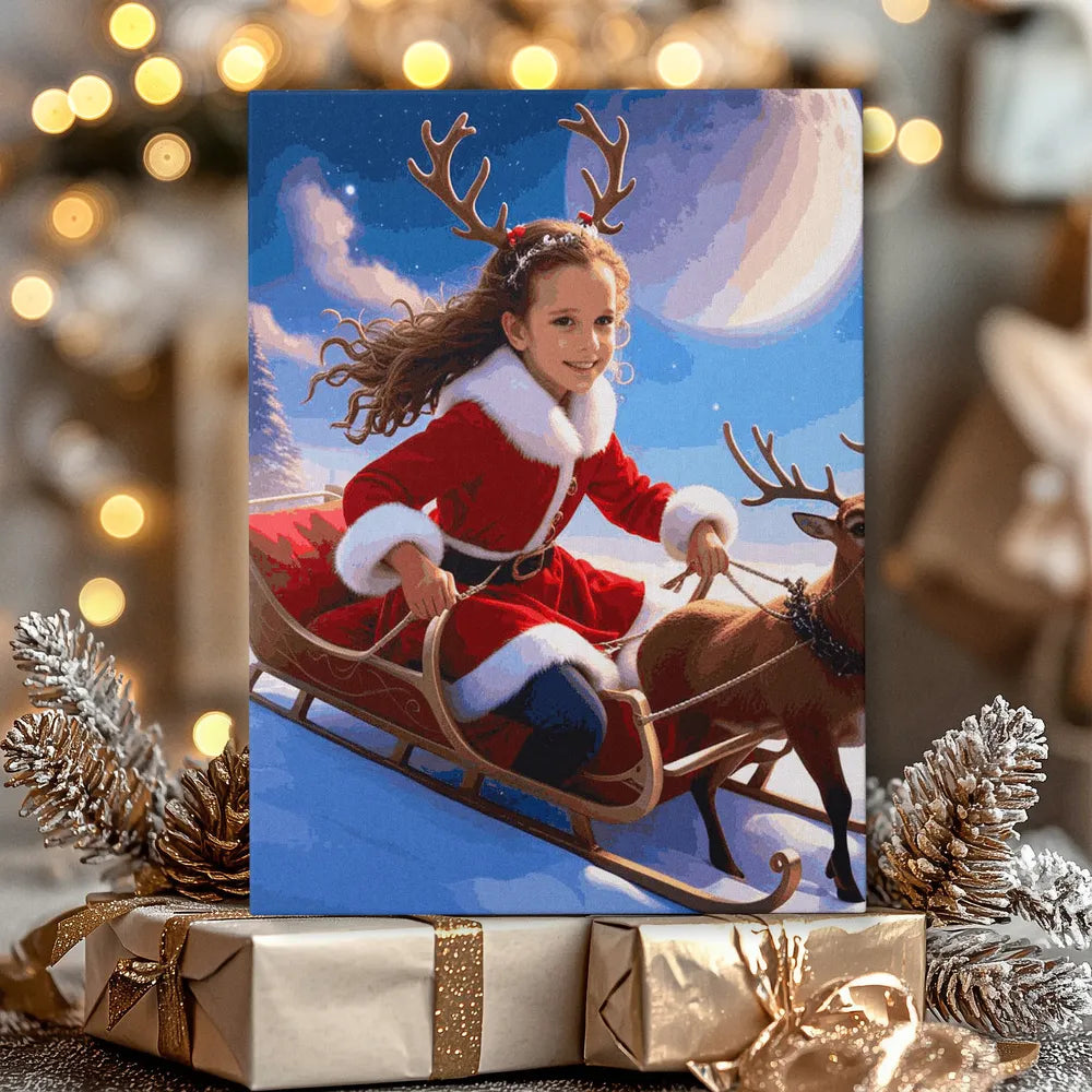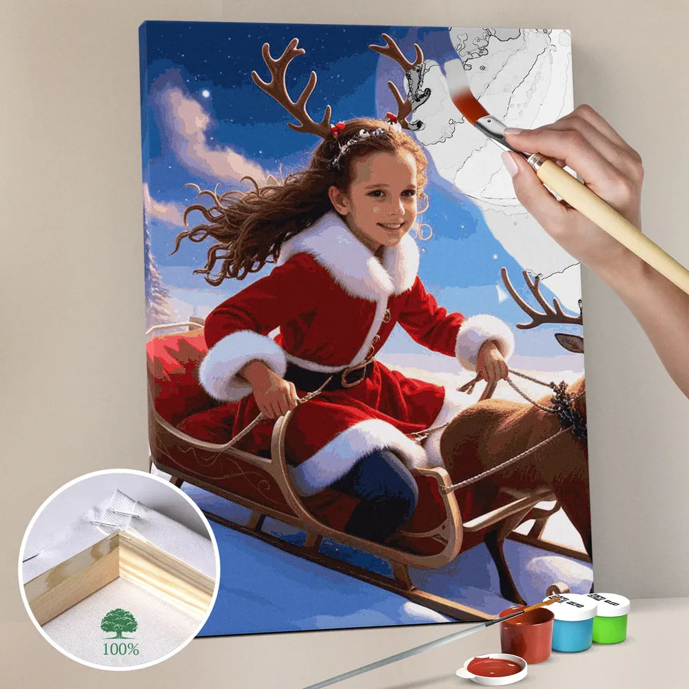 Zestaw do malowania po numerach „Świąteczna przygoda na saniach”.