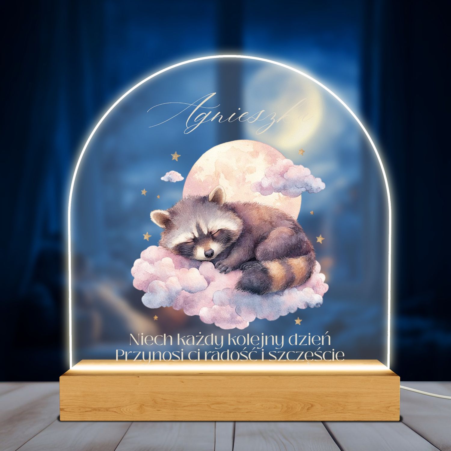 Zatrzymaj najpiękniejsze chwile dzieciństwa w magicznej oprawie dzięki naszej personalizowanej lampce LED „Pierwsze wspomnienia”. 🌙✨ Ta wyjątkowa lampa przedstawia uroczego szopa śpiącego na chmurce, otoczonego gwiazdkami i pastelowym blaskiem. Dodając imię swojego dziecka, tworzysz niezapomnianą pamiątkę, która na zawsze będzie przypominać o pierwszych, najczulszych latach życia.