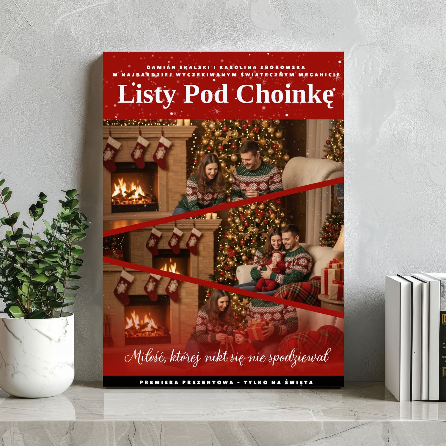 Ten personalizowany obraz na płótnie pozwoli Ci przemienić zwykłe zdjęcie w niezwykłą, świąteczną historię - zupełnie jak okładka filmu, w którym główną rolę gra Twoja rodzina. 🎬🎄