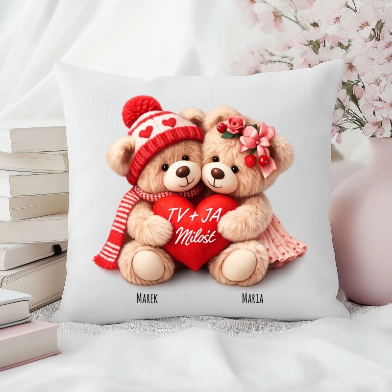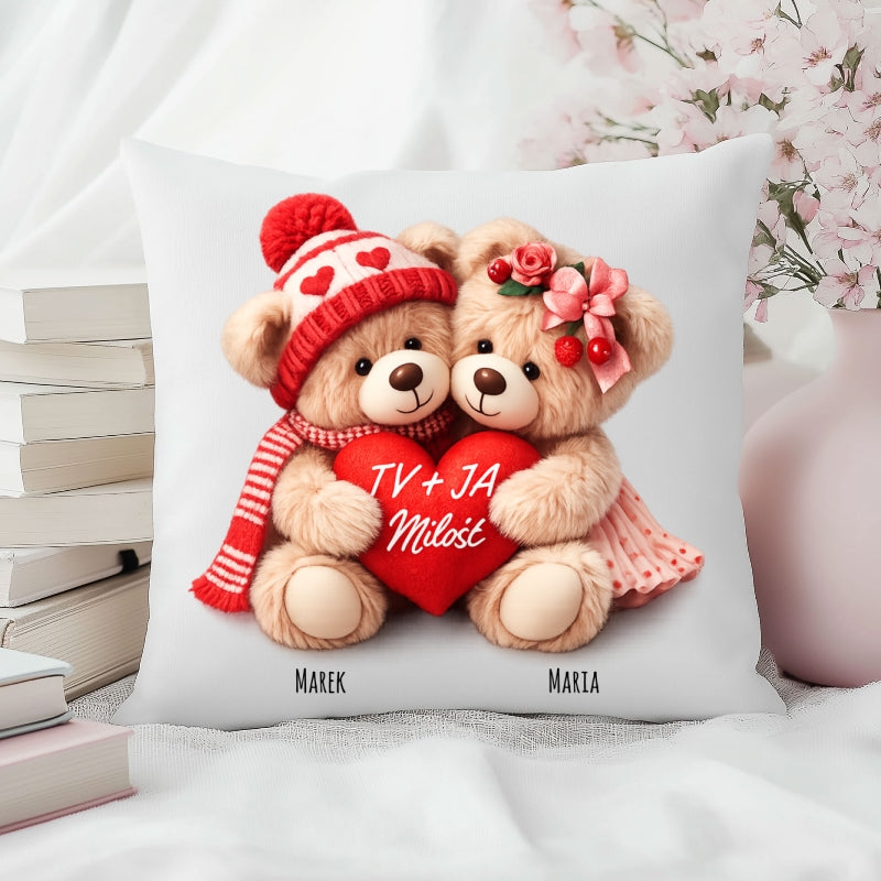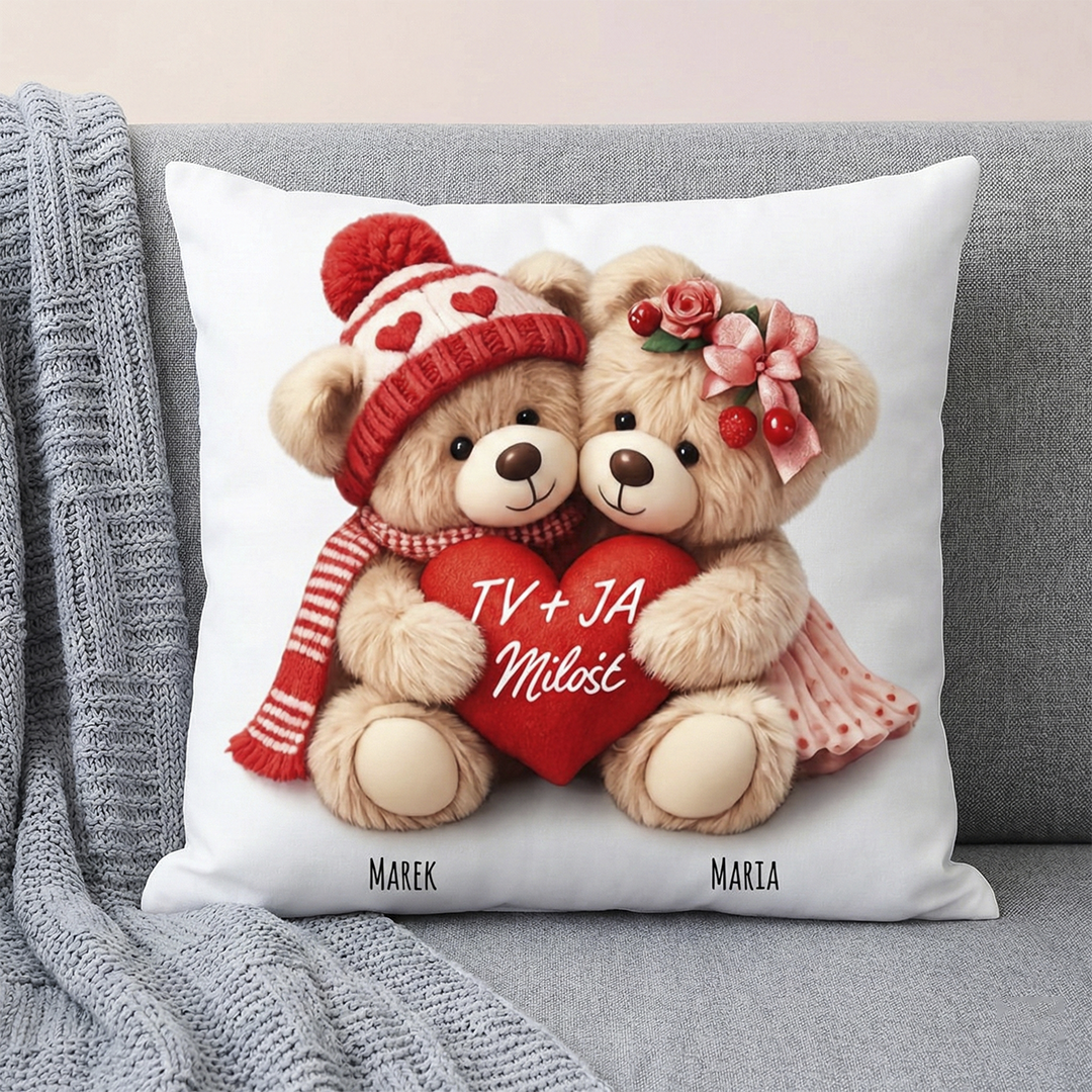 Szukasz prezentu, który jest miękki, uroczy i osobisty? Ta poduszka z motywem zakochanych misiów to strzał w dziesiątkę. Symbolizuje to, co w związku najfajniejsze: bliskość, wsparcie i wspólne chwile relaksu.