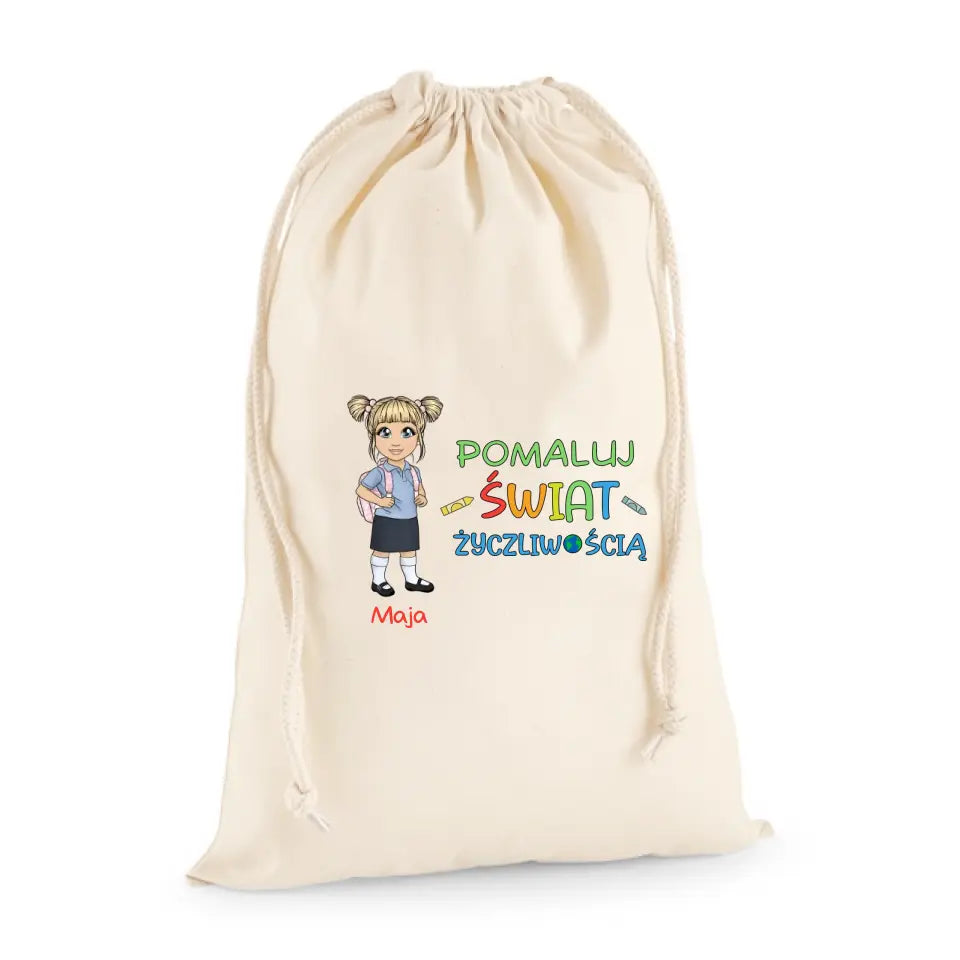 Załóż ją na ramię jako elegancką torebkę lub przerzuć przez plecy, korzystając z funkcji plecaka, zapewniając sobie wygodę podczas długich spacerów czy wycieczek. Ta torba nie tylko dodaje uroku Twojemu wyglądowi, ale również wspiera dbanie o naszą planetę. Wykonana w całości z 100% przetworzonej bawełny, zapewniając przyjazny dla środowiska produkt.