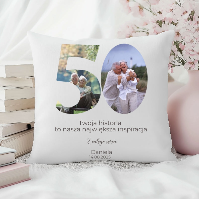 50. rocznica ślubu to wyjątkowy moment, który zasługuje na niezwykłą pamiątkę. Ta spersonalizowana poszewka dekoracyjna o wymiarach 50×50 cm została zaprojektowana tak, aby uchwycić piękno wspólnych wspomnień i emocji. Dzięki możliwości dodania zdjęcia, imion oraz daty, staje się niepowtarzalnym prezentem, który wzruszy i zachwyci obdarowanych.