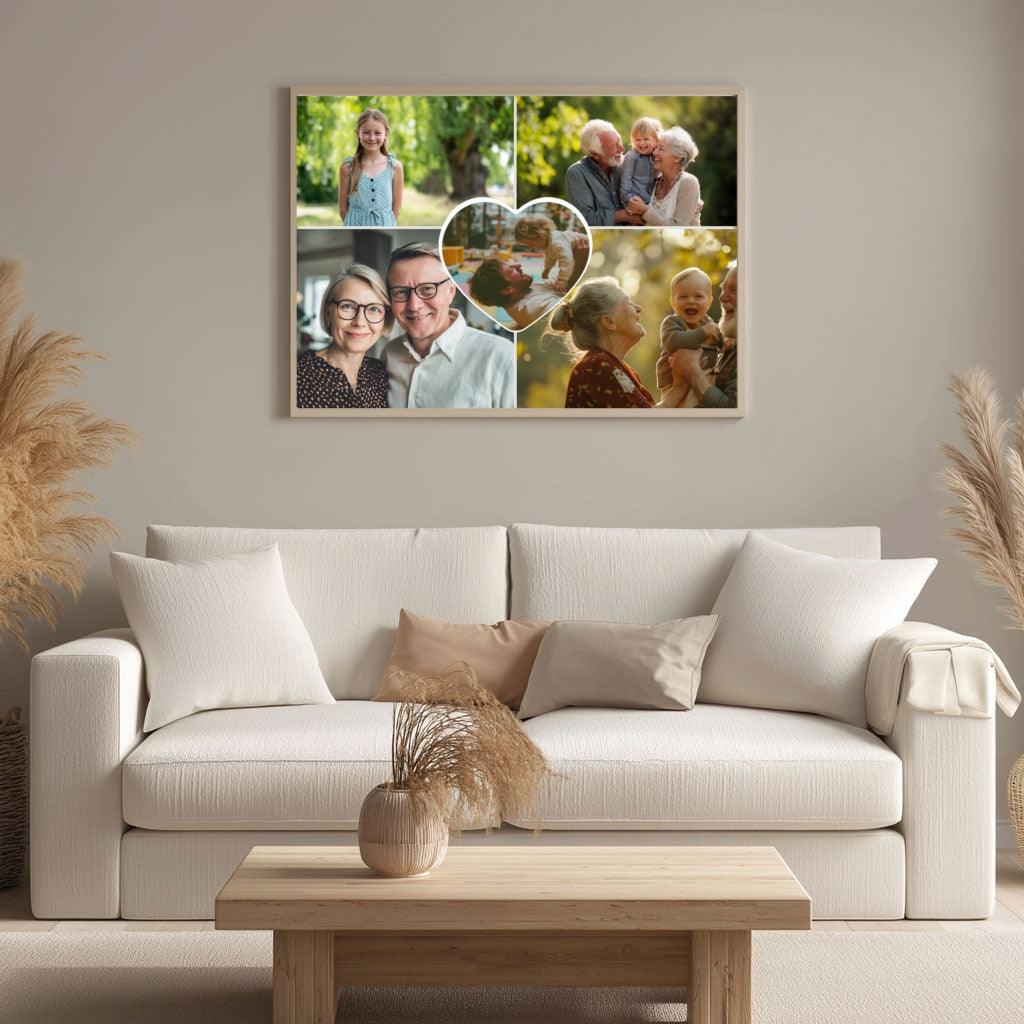 Ten wyjątkowy produkt umożliwia dodanie czterech zdjęć Twojej rodziny, przyjaciół lub ukochanych wspomnień oraz wpisanie własnego tekstu, który pojawi się w centralnym sercu kompozycji.