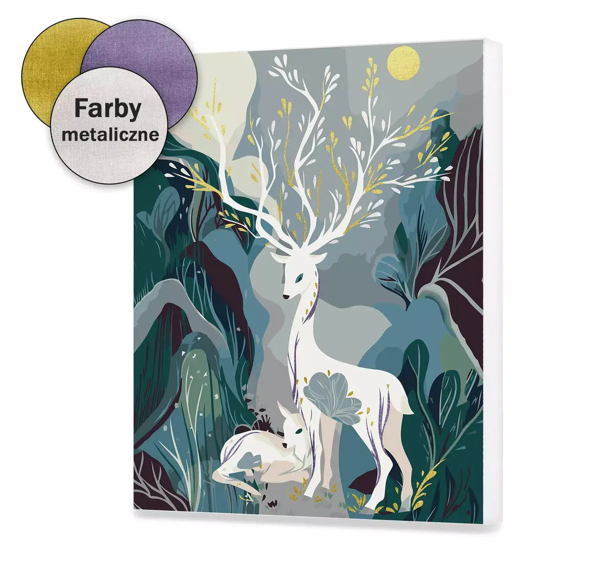 • Tylko w naszym zestawie znajdziesz farby z odcieniami złota i srebra. Dzięki nim Twój obraz uzyska niepowtarzalny klimat.
