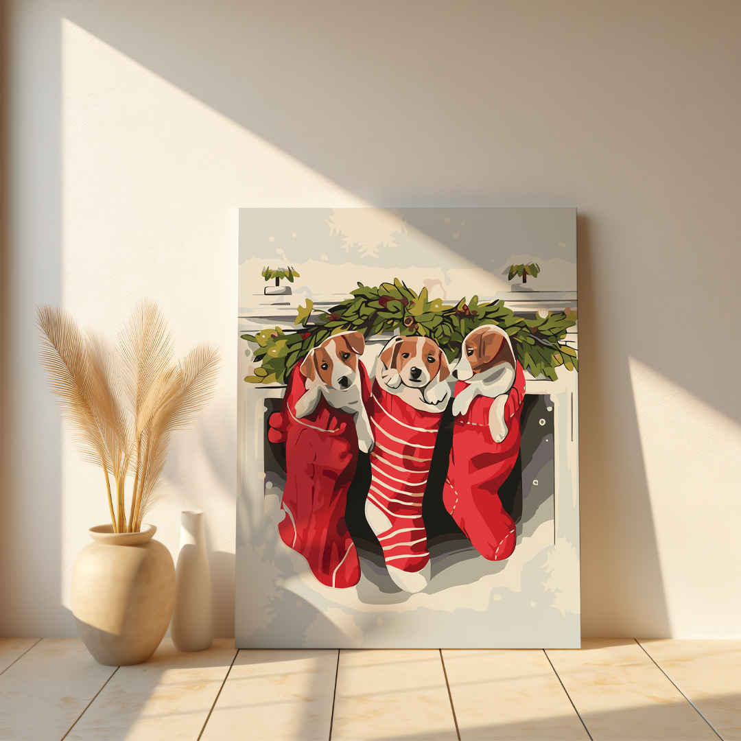 Malowanie po Numerach - Świąteczne Szczeniaki