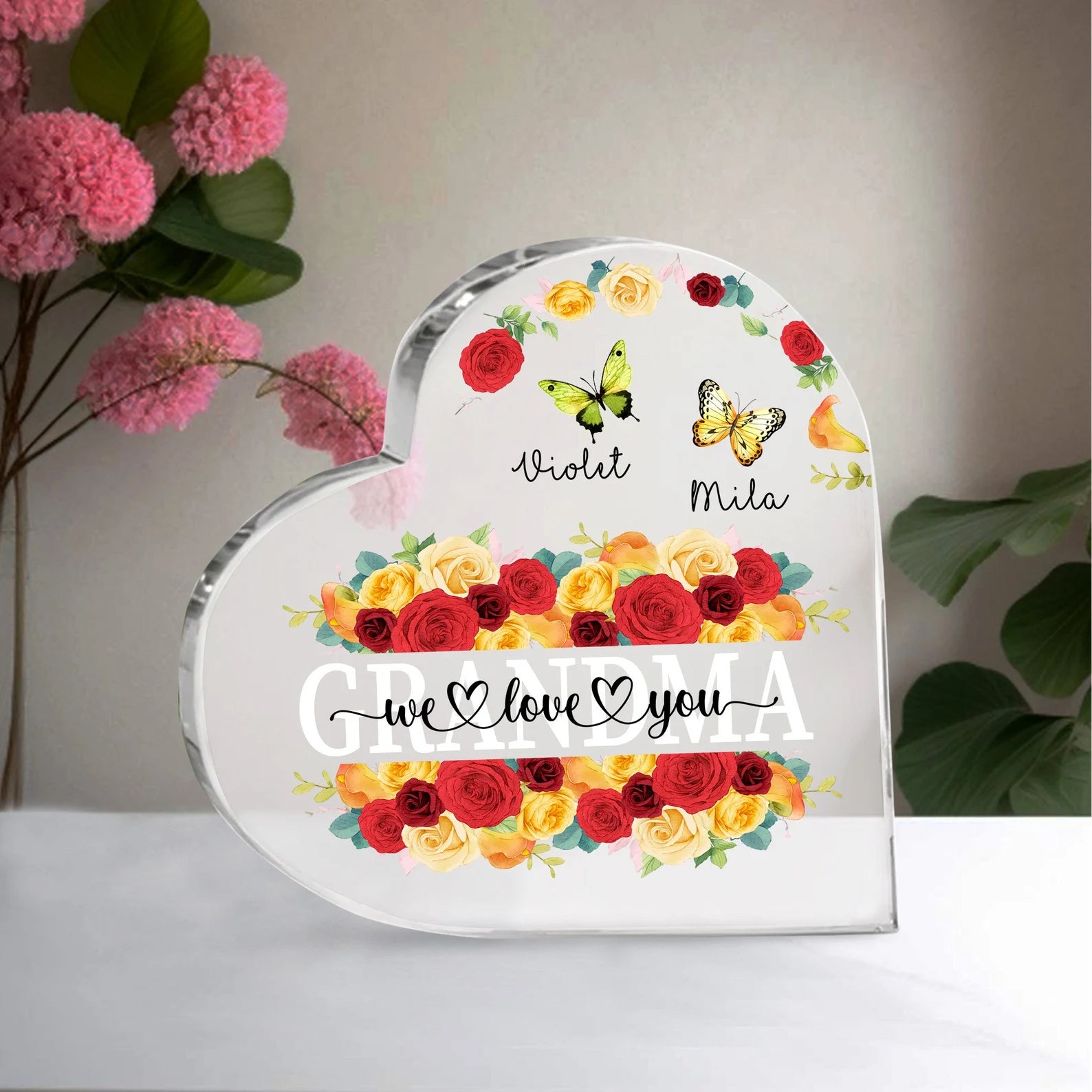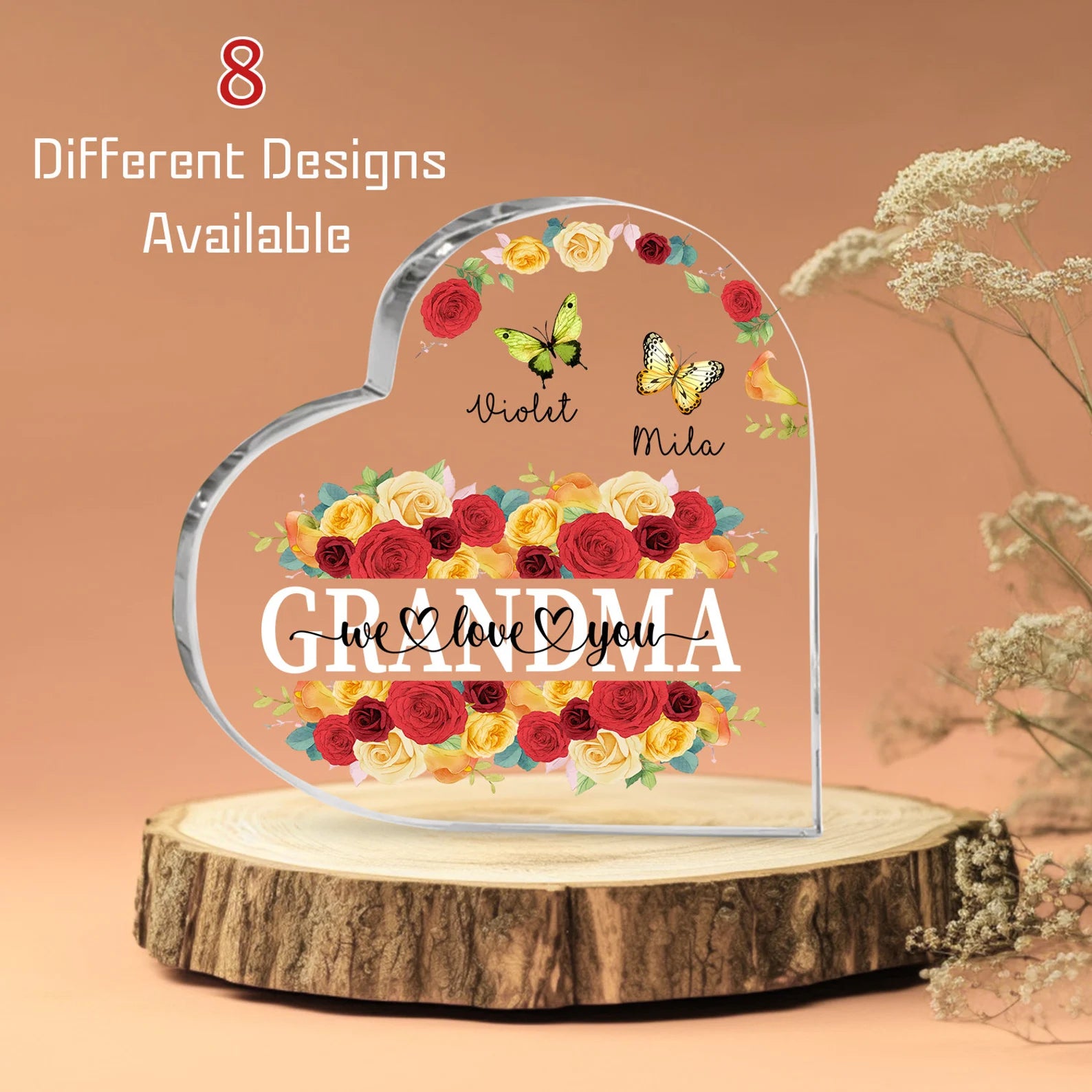 Spersonalizowana tabliczka akrylowa w kształcie serca będzie wspaniałym prezentem dla babci