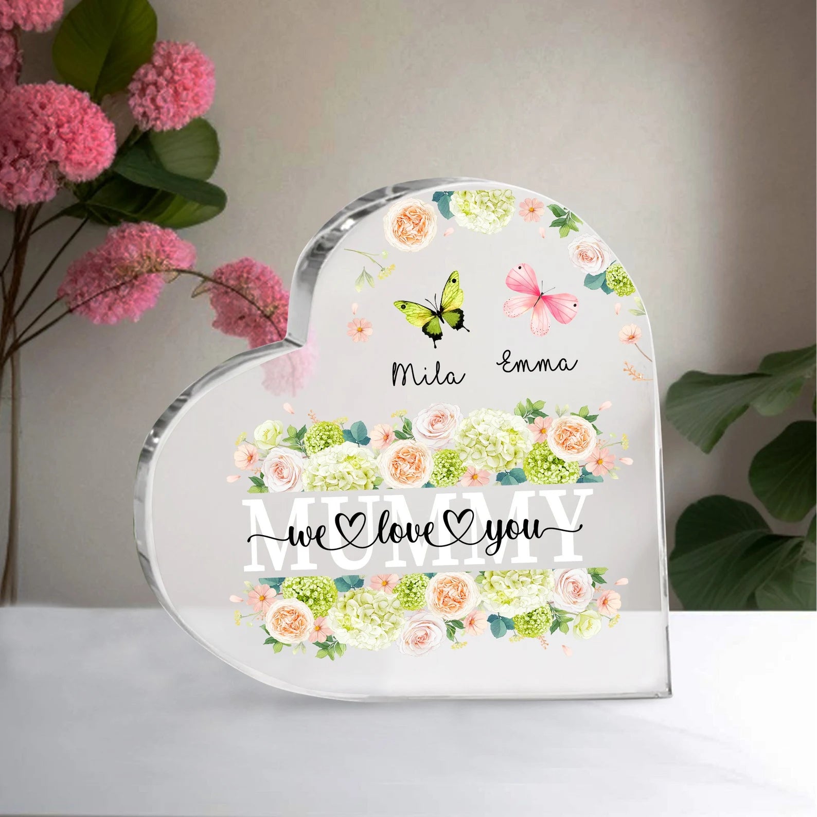 Piękny akrylowy blok z kryształowym sercem, profesjonalnie zadrukowany i spersonalizowany, co czyni go wyjątkowym prezentem.