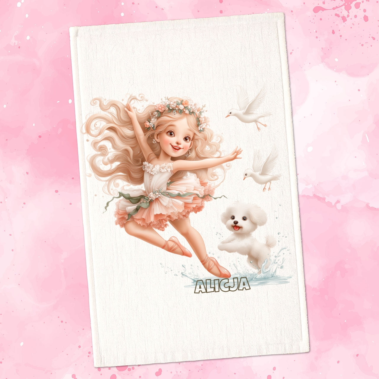 Spersonalizowany Ręcznik z Imieniem – Baletnica i Piesek