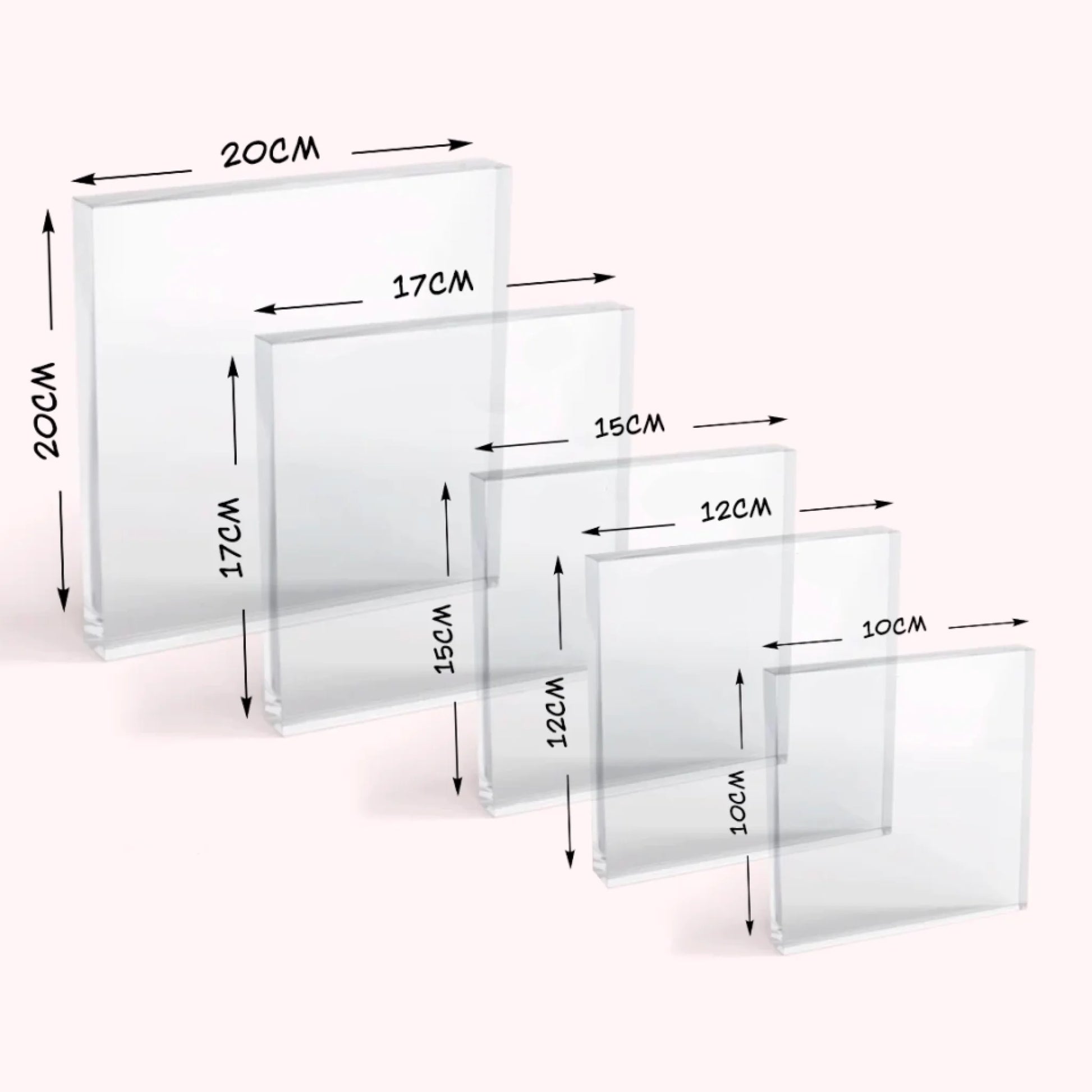 - Wymiary 10x10x1,5 cm albo 12x12x1,5 cm albo 15x15x1,5 cm albo 17x17x1,5 cm albo 20x20x1,5 cm (wybierz przy zamówieniu).